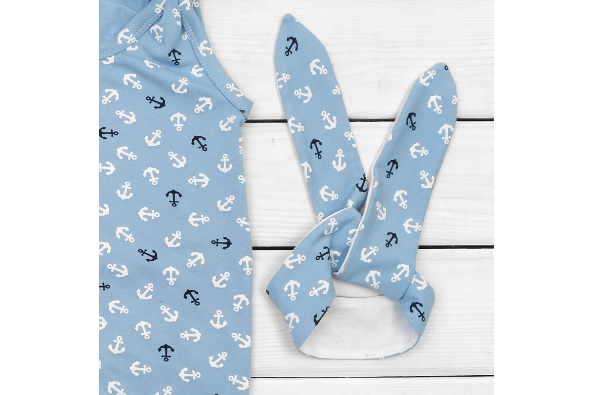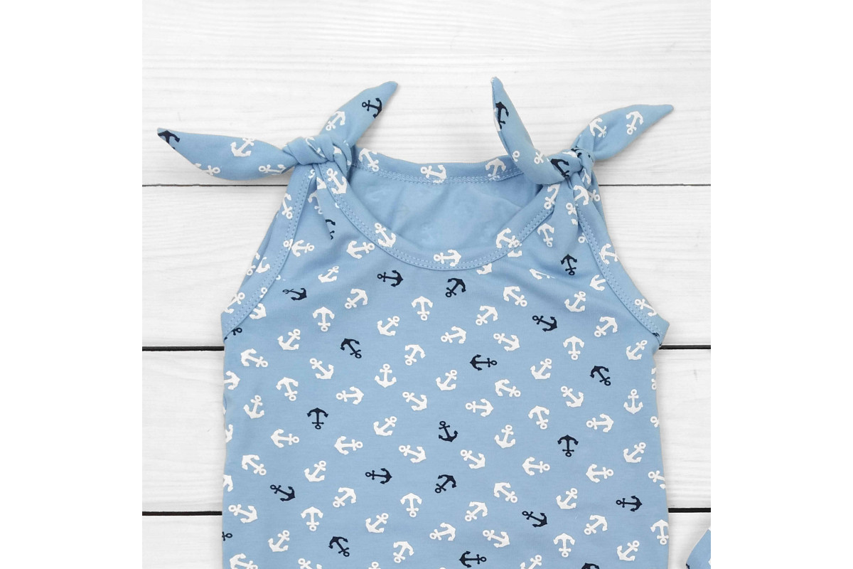 Сдержанный голубой цвет с принтом якоря создаст очень летнее и морское настроение.