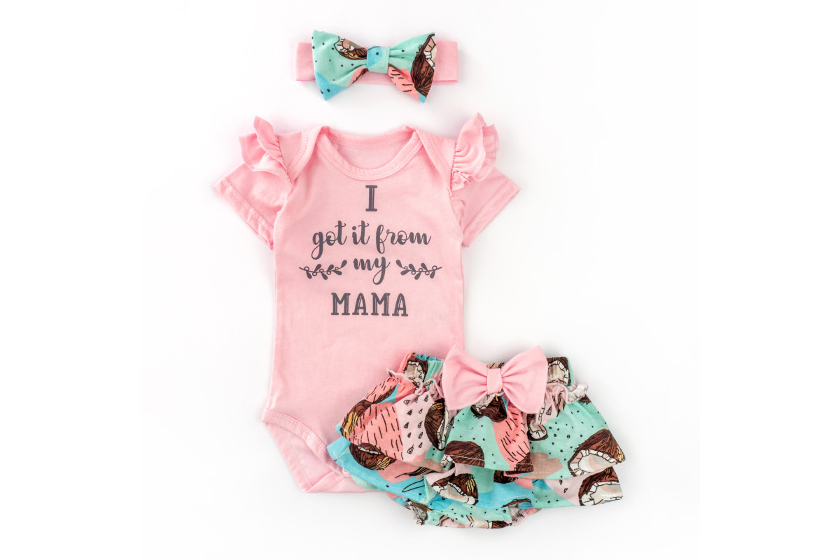 Комплект для девочки: боди, блумеры и повязка.