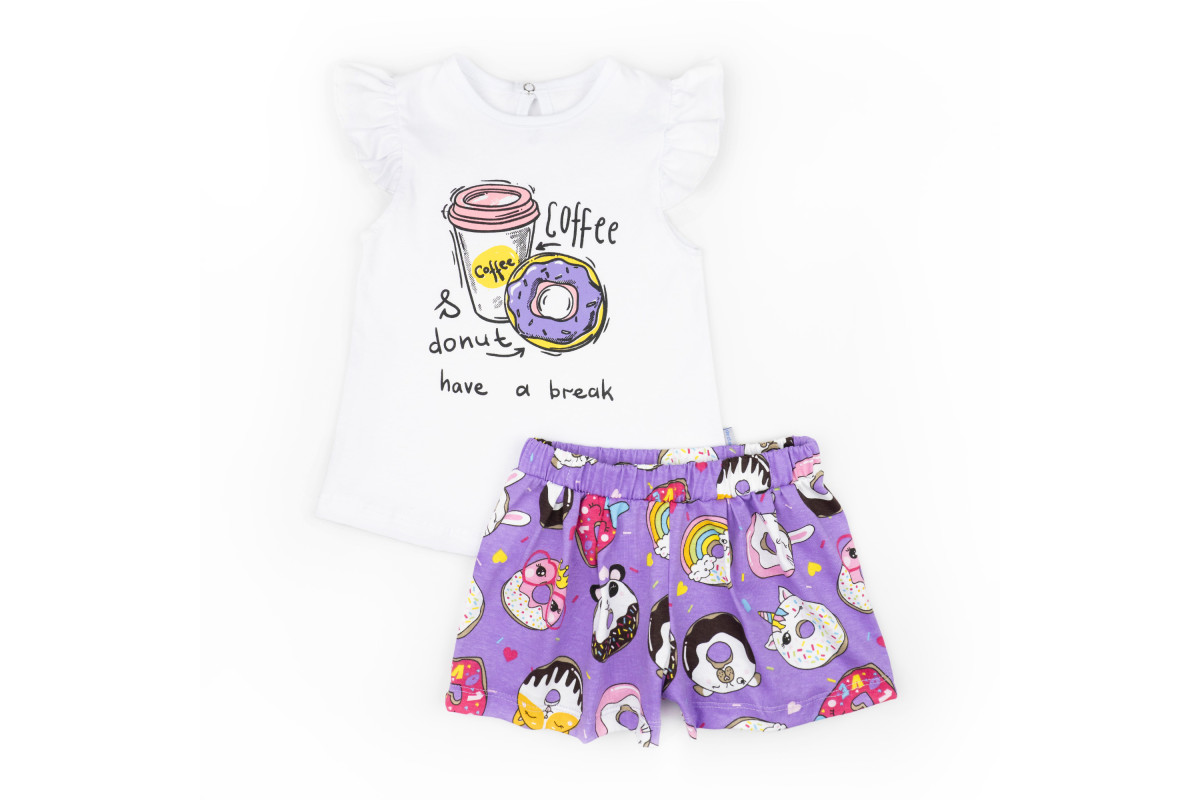 Комплект не только красивый но и практичный. Он не будет ограничивать активных движений малышки и сделает ее летние прогулки ярче.