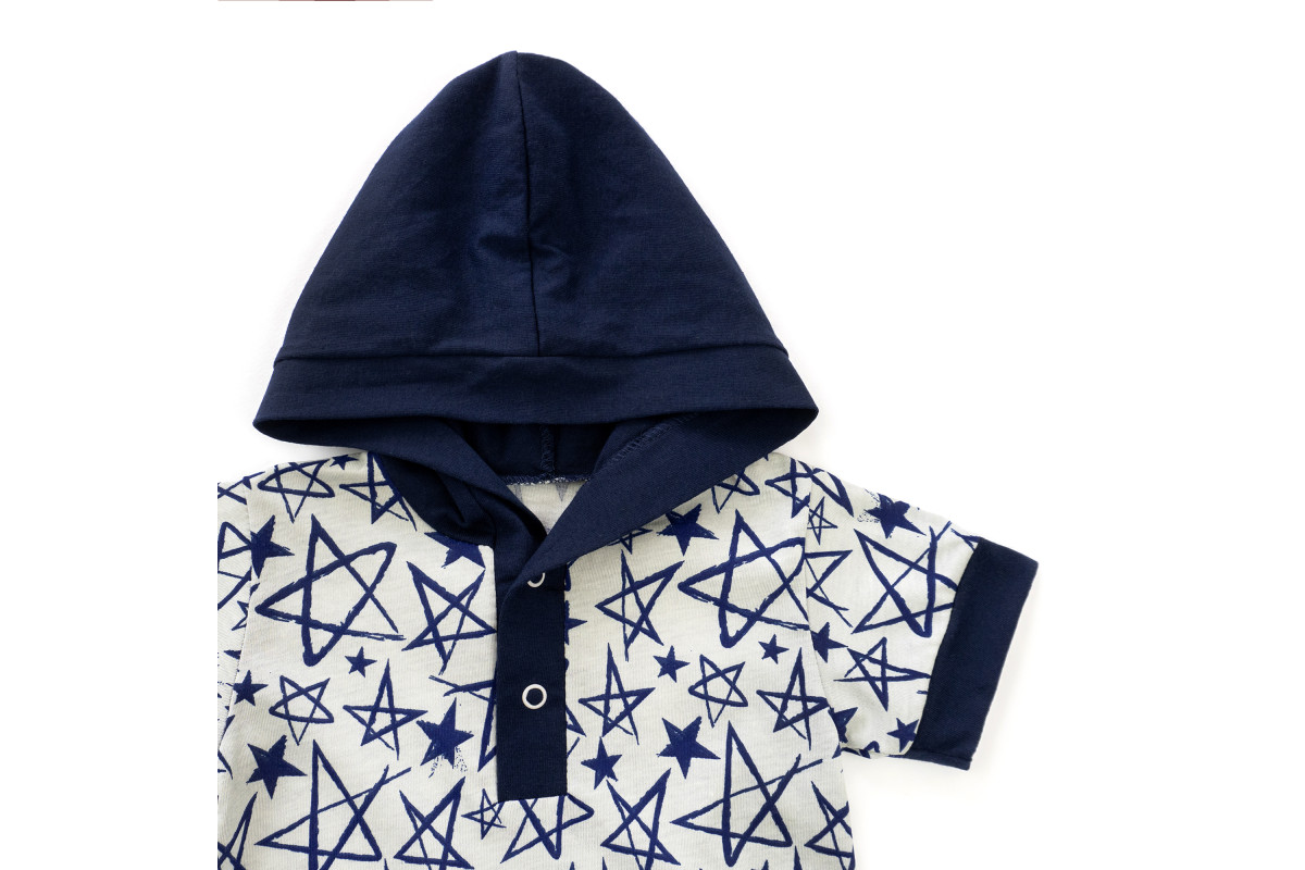 Стильный летний песочник с капюшоном - это функциональная модель для жарких дней.