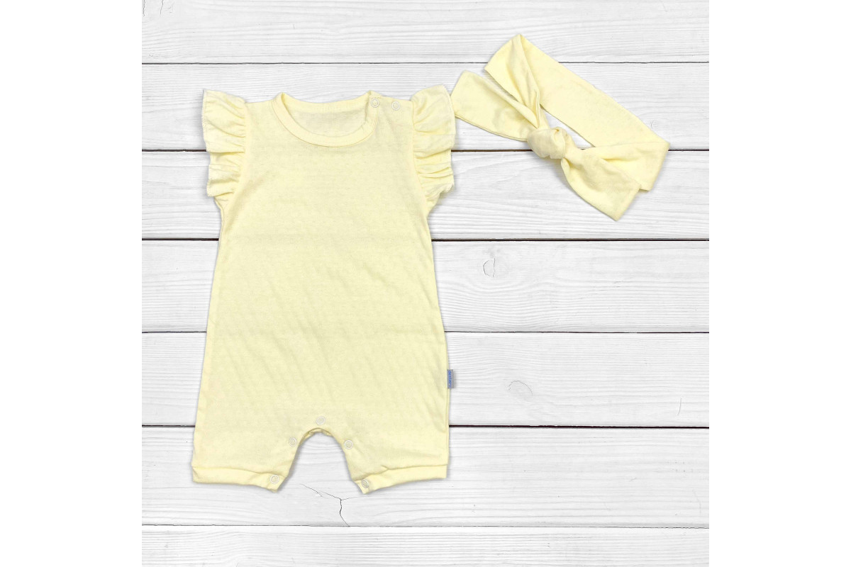 Красивый однотонный песочник для девочки имеет рукава-крылышки.
