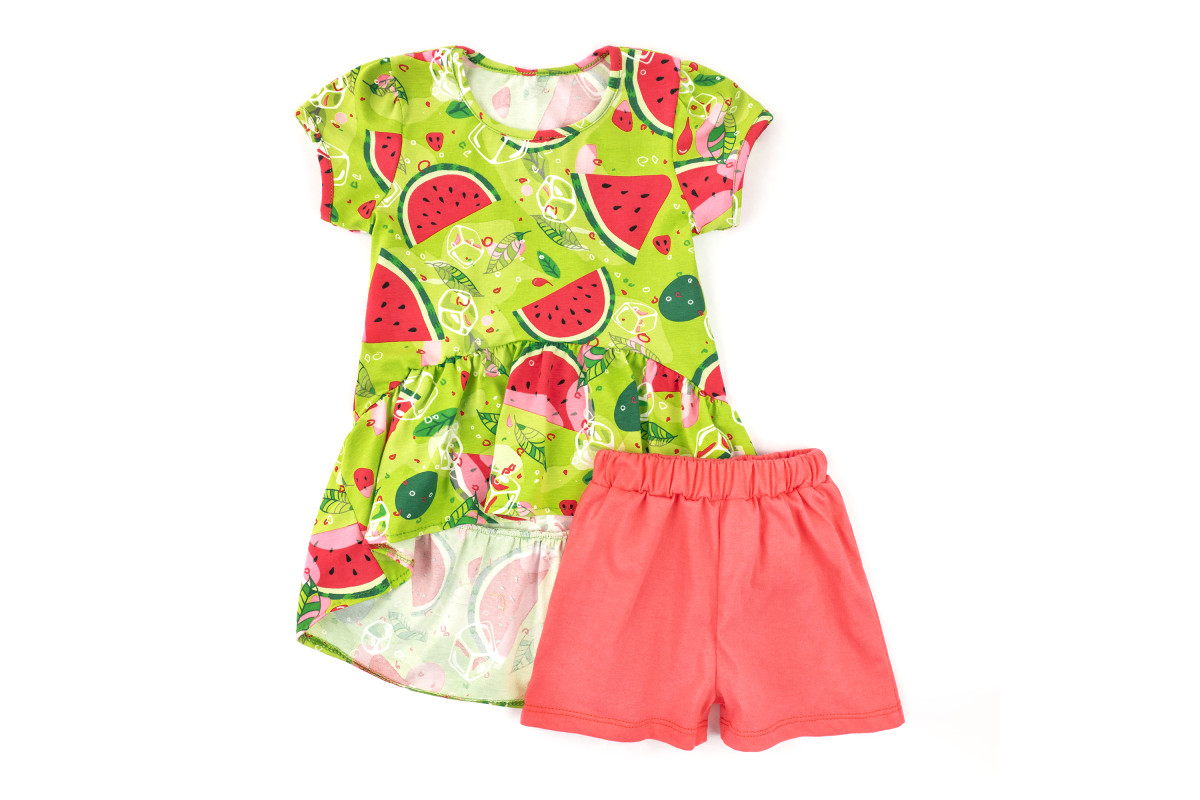 Стильный и яркий детский комплект на лето пошит из натуральной ткани кулир. Ткань состоит на 100% из хлопка.