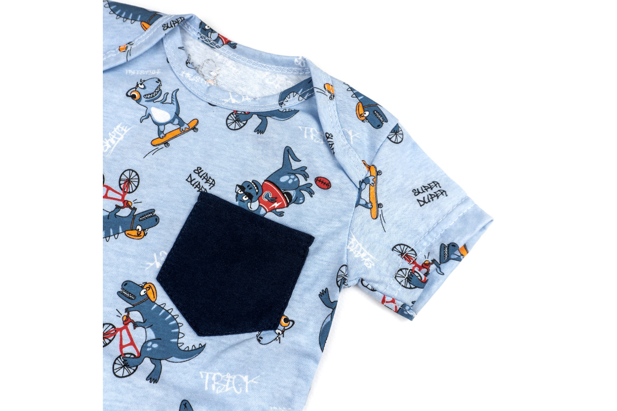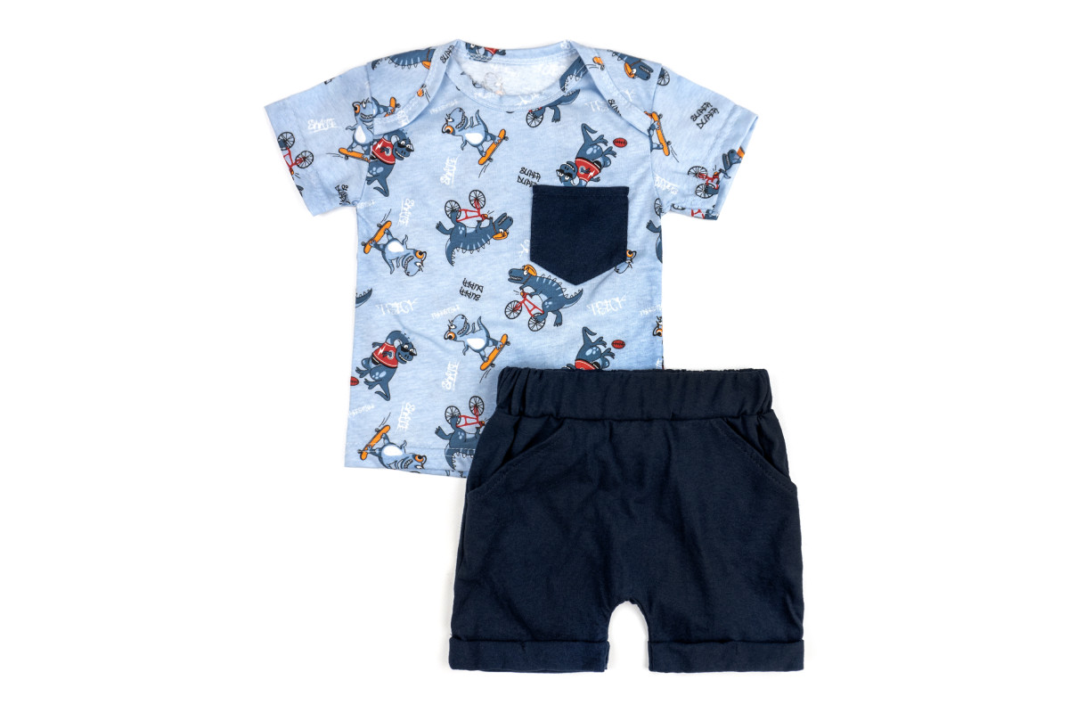 Детский костюмчик состоит из футболки и шортов.