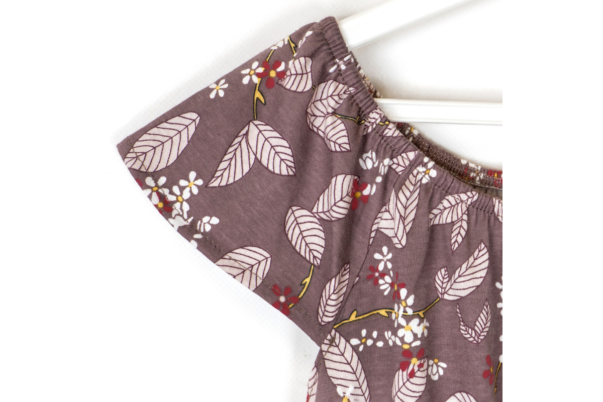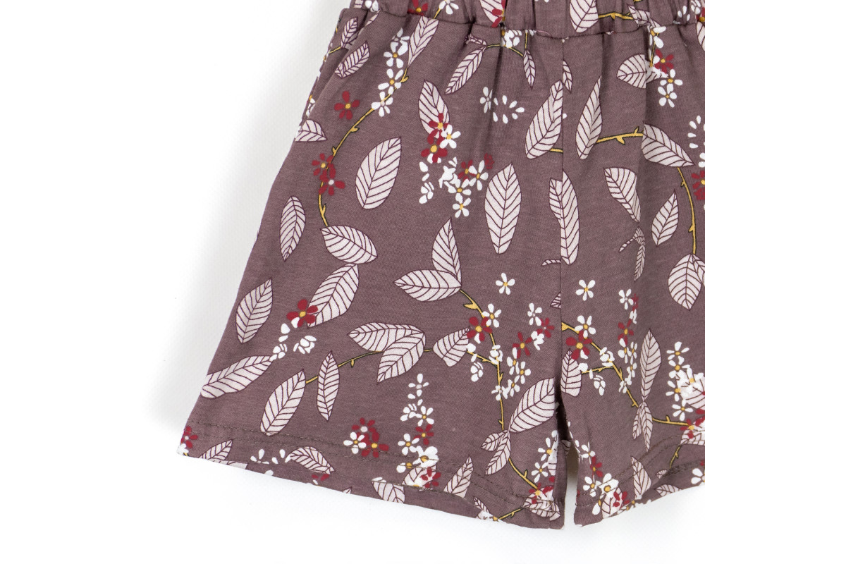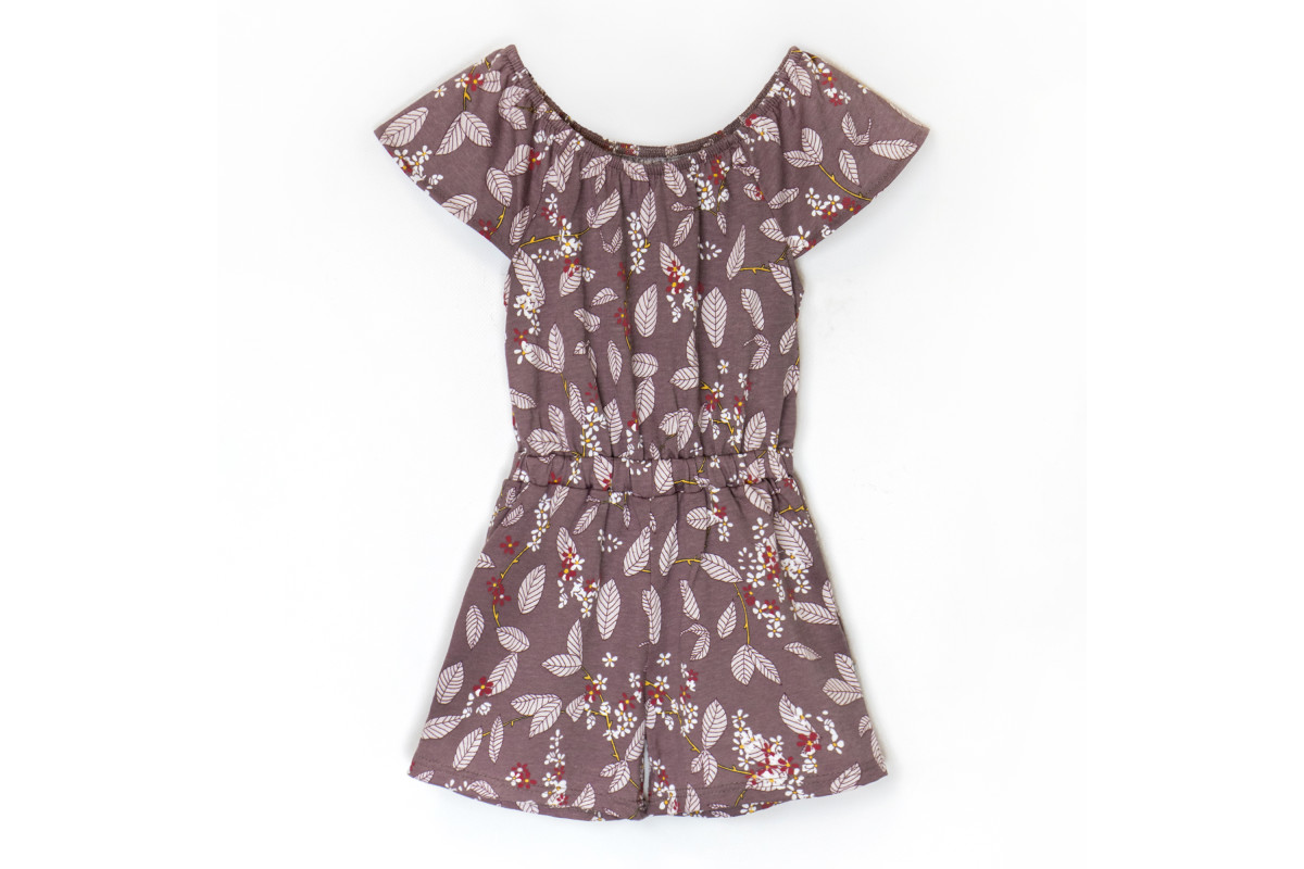 Комбинезон летний пошит из кулира с нежным и милым принтом - листочки.