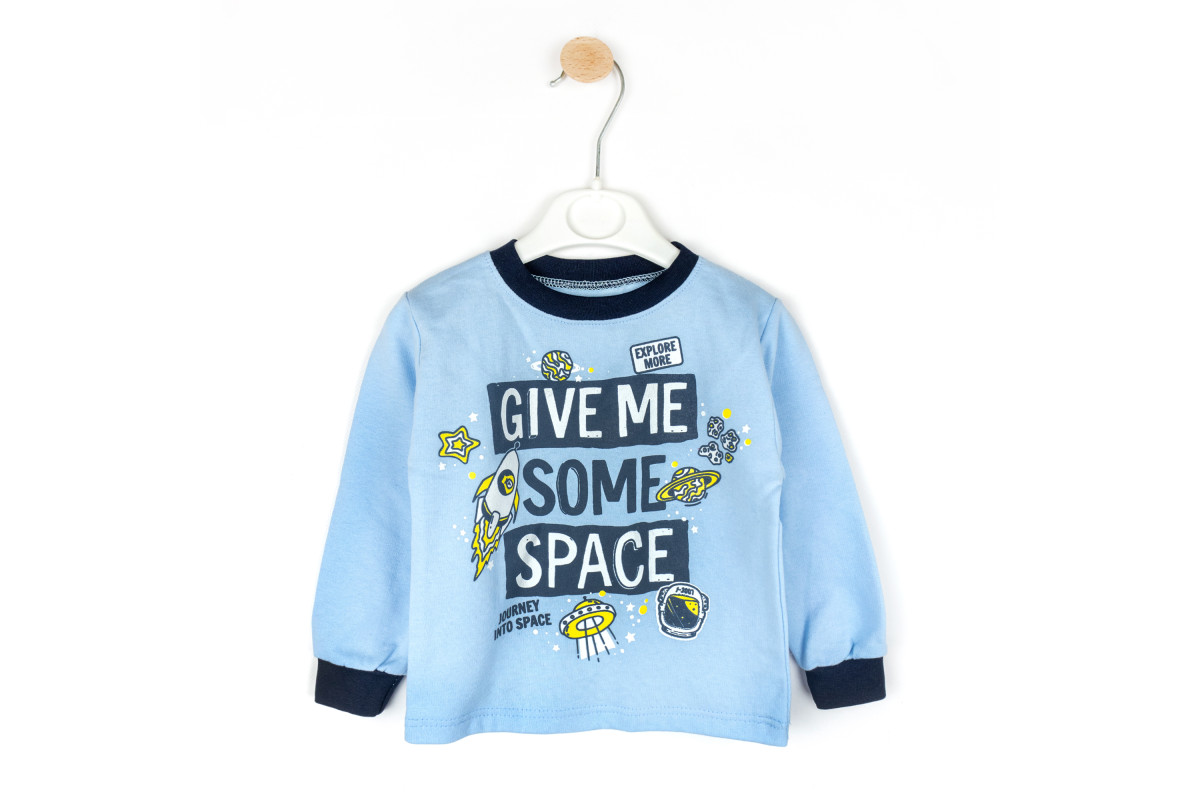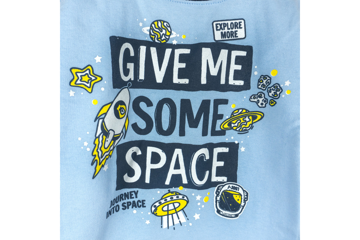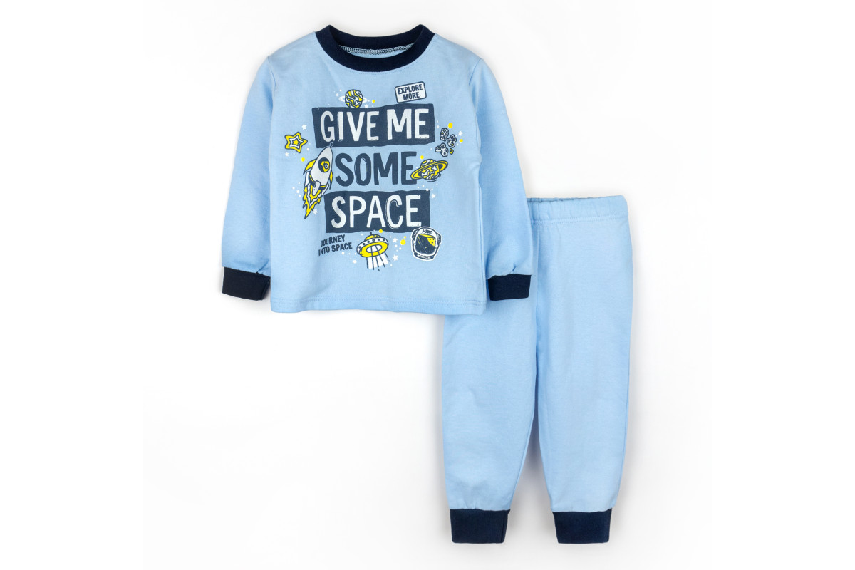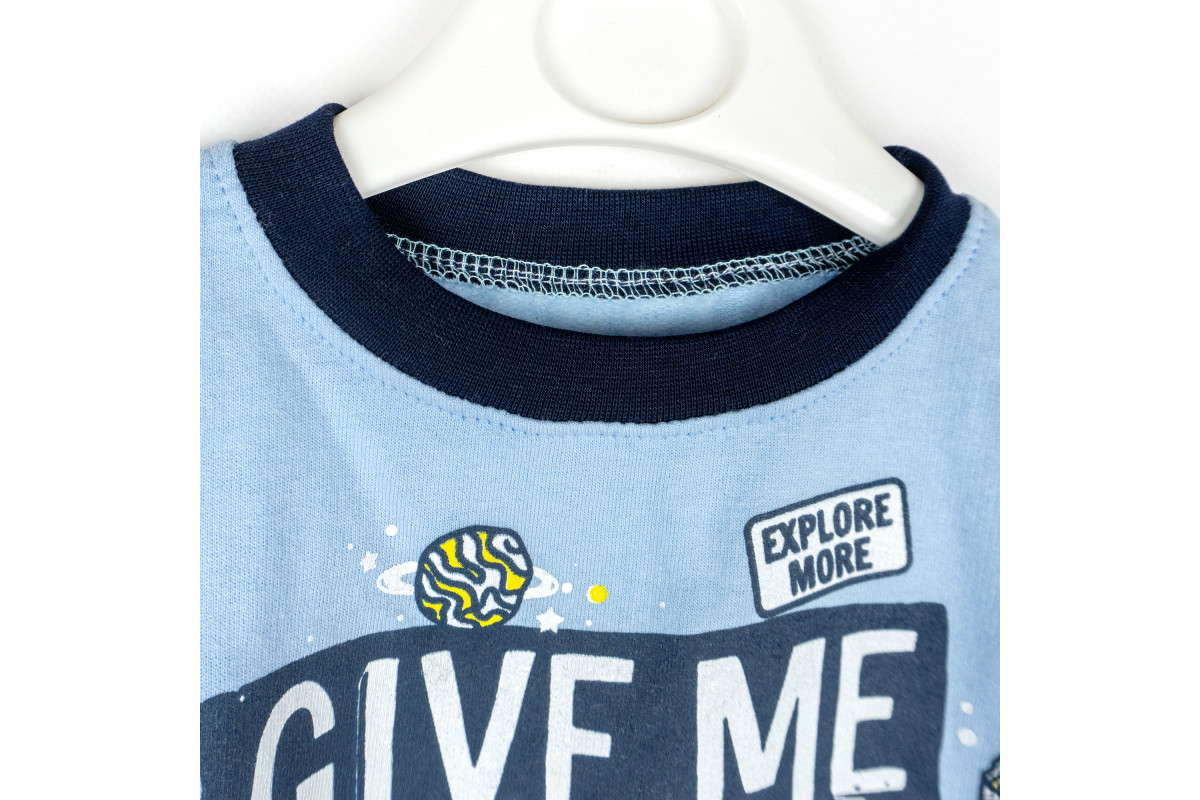 Пижама для мальчика из ткани с начесом.Кофта пижамы декорирована принтом с надписью.Пижамные штаны о..