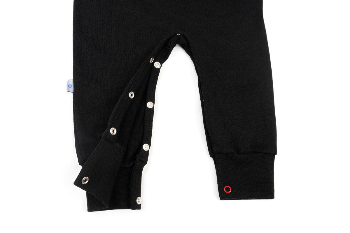 Комбинезон имеет кнопки внизу изделия для смены памперса.