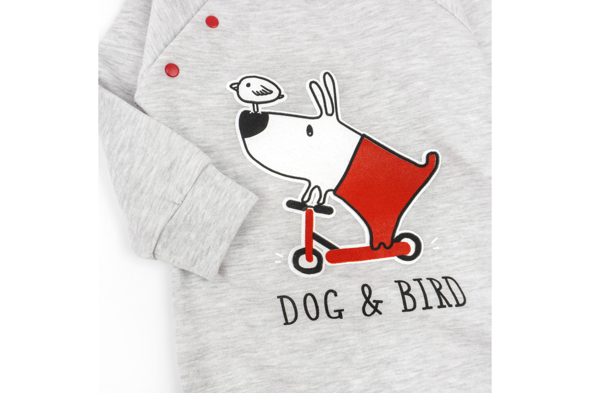 Человечек серого цвета. Декор – принт с собачкой.