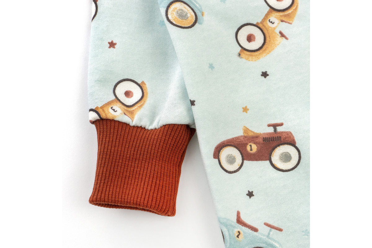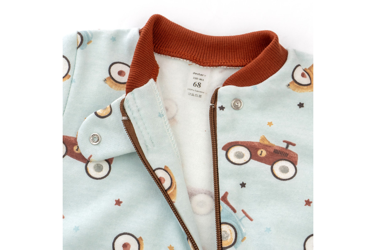 Стильний чоловічок для хлопчика блакитного кольору з машинками.Чоловічок з відкритими рукавчиками та..