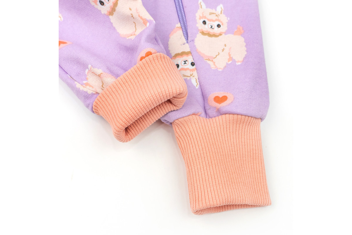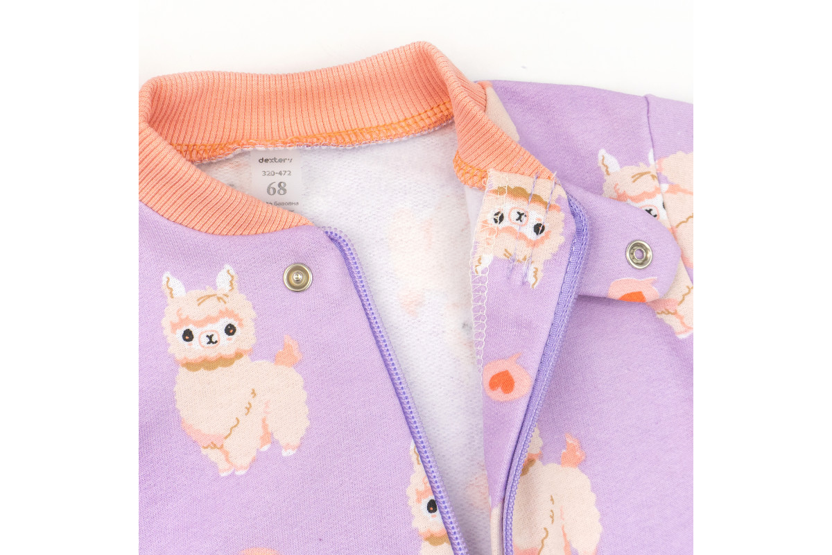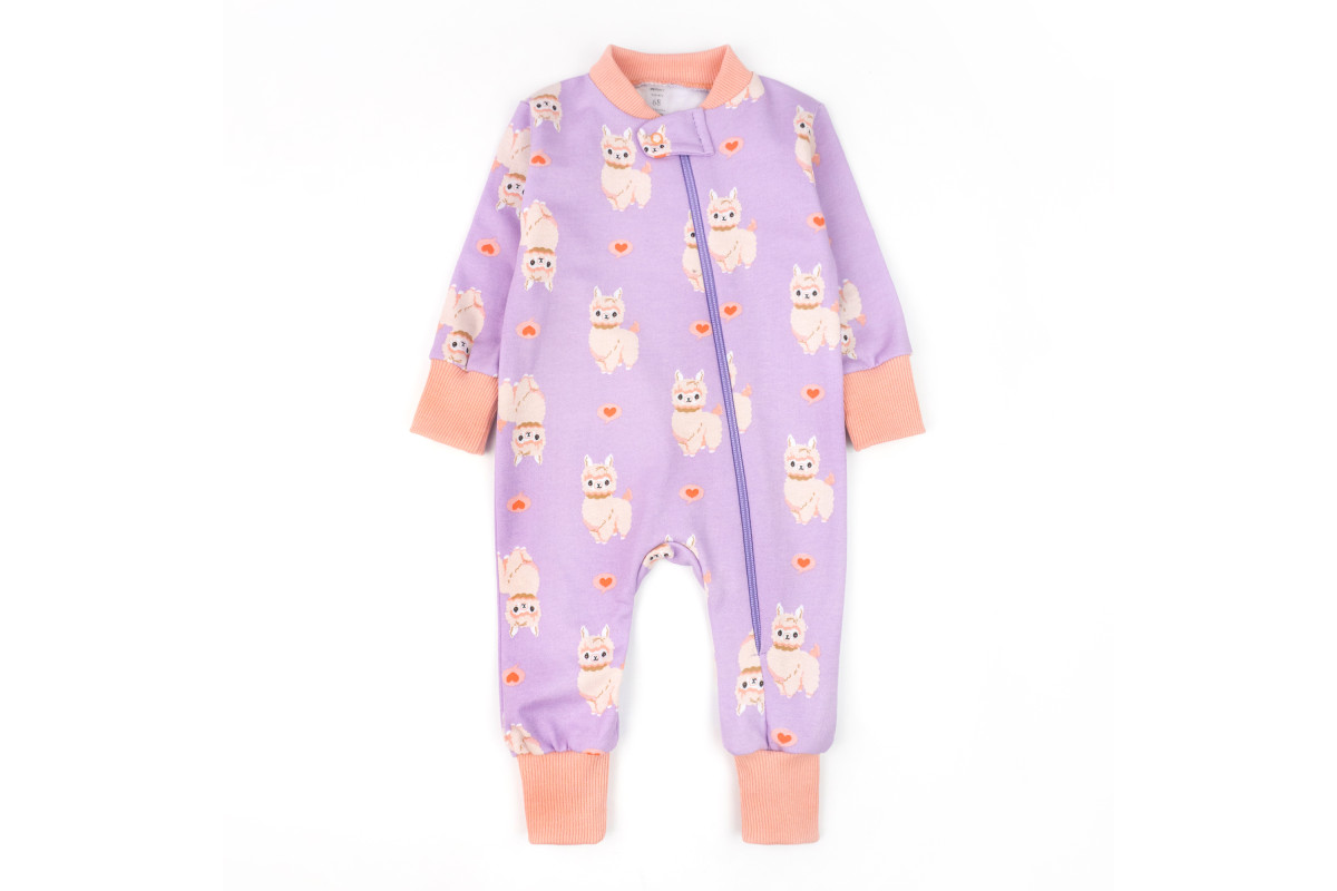 Слип застегивается с помощью молнии, идущей по диагонали. Поверх молнии есть "ярлычок" с кнопочкой, который скрывает молнию, чтобы не мешала и не травмировала нежную кожу малыша.