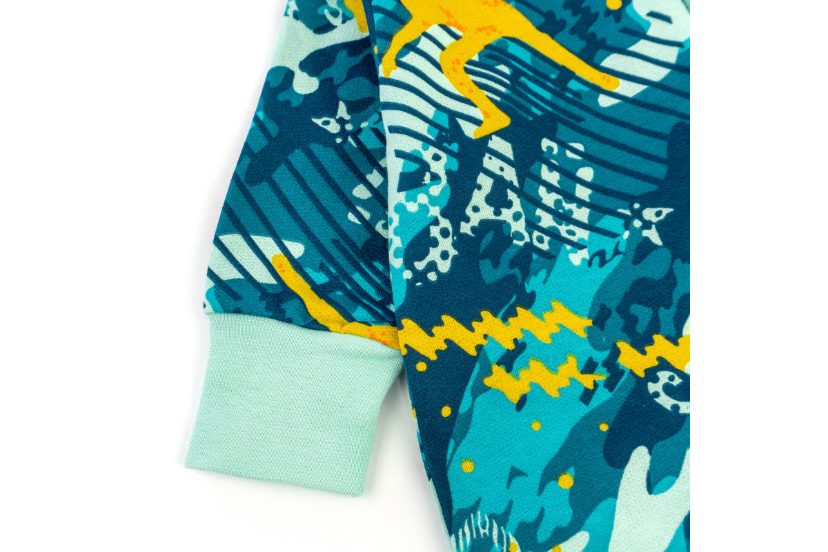 У человечка яркий принт. Такая расцветка точно понравится ребенку.