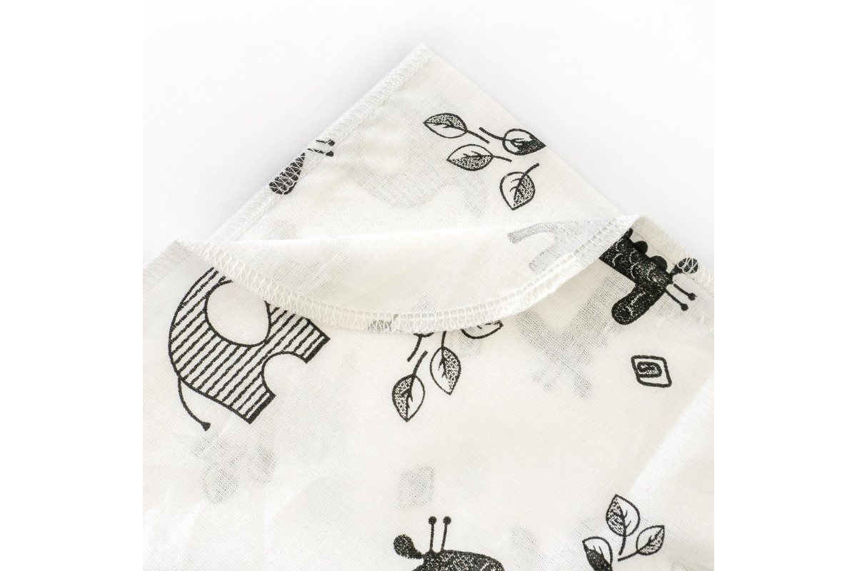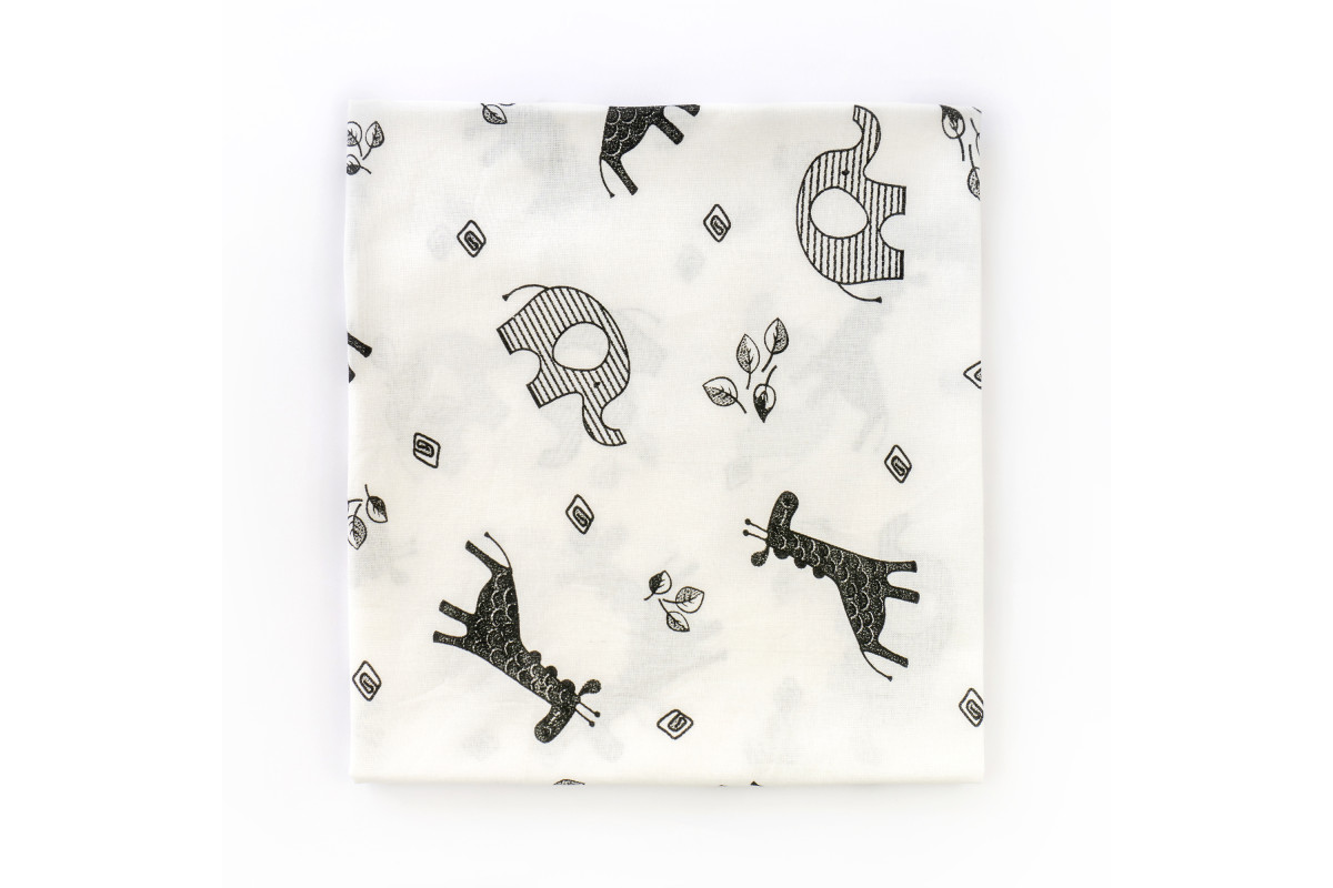 Белая пеленка украшена стильным принтом зверят в черном цвете.