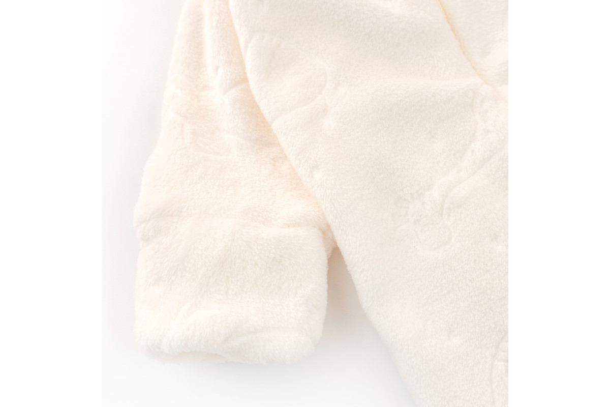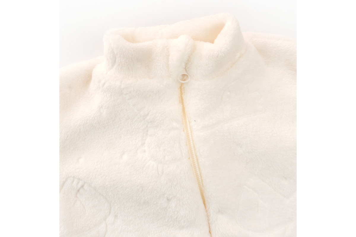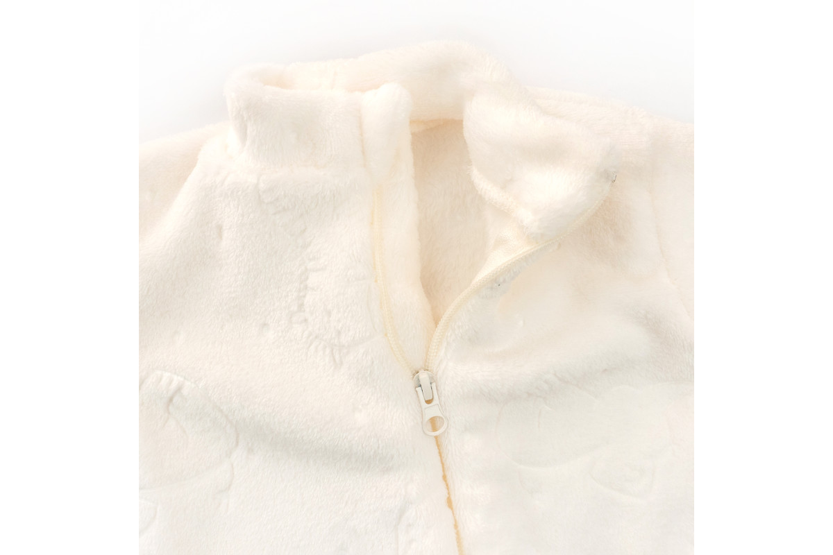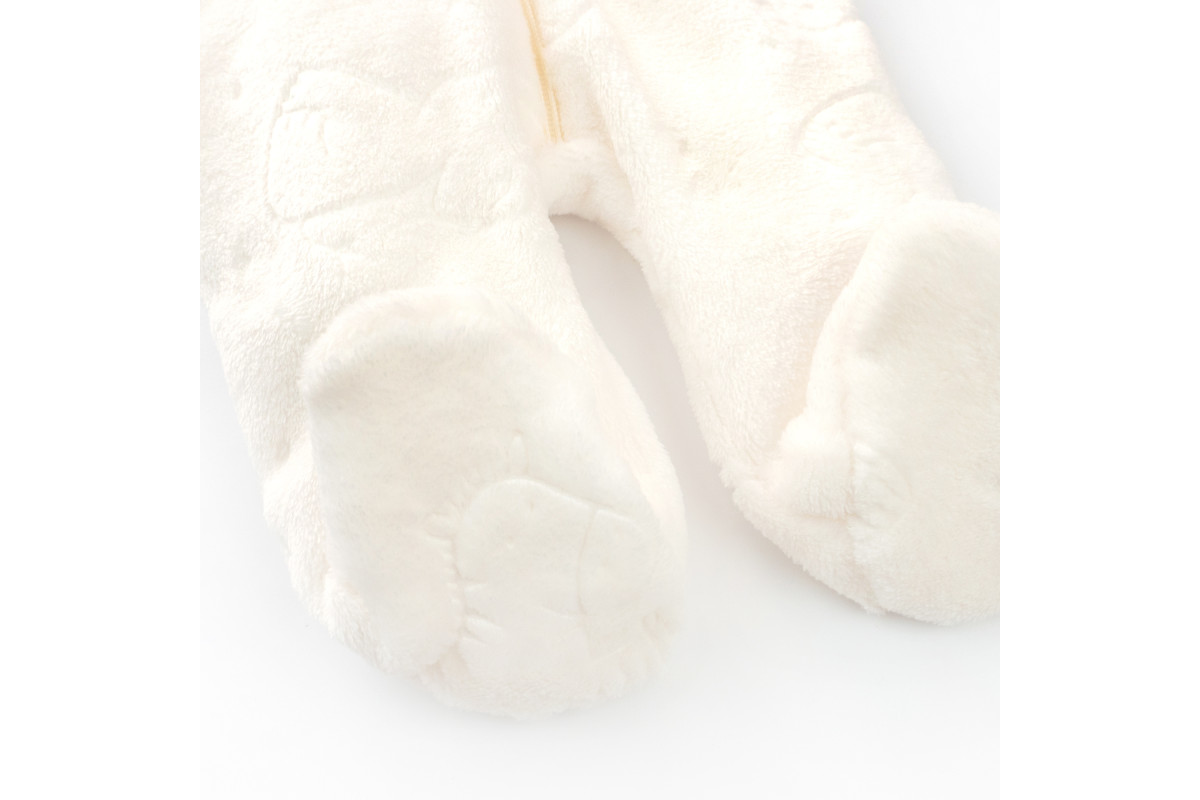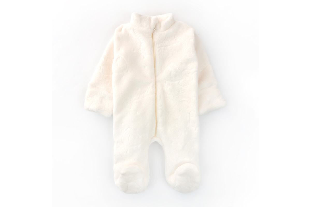 Комбез имеет удобную горловинку, скрывающую молнию для безопасности нежной кожи малыша.