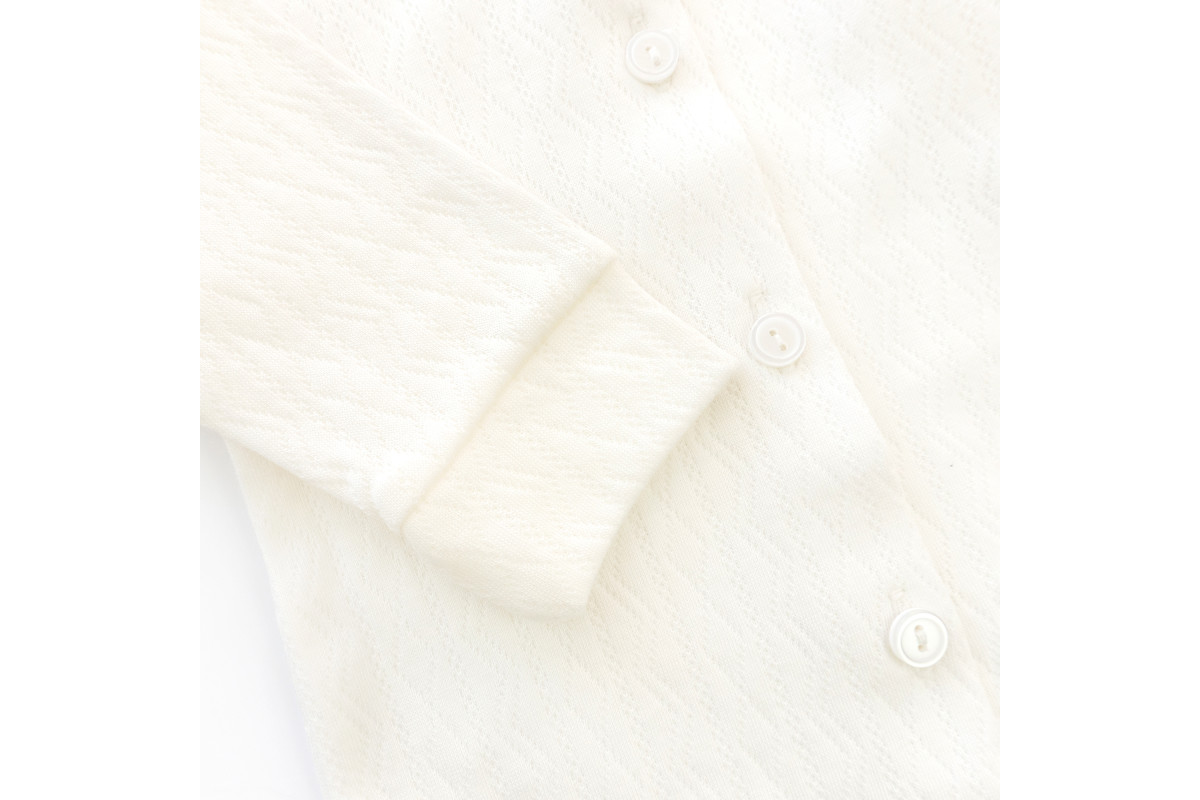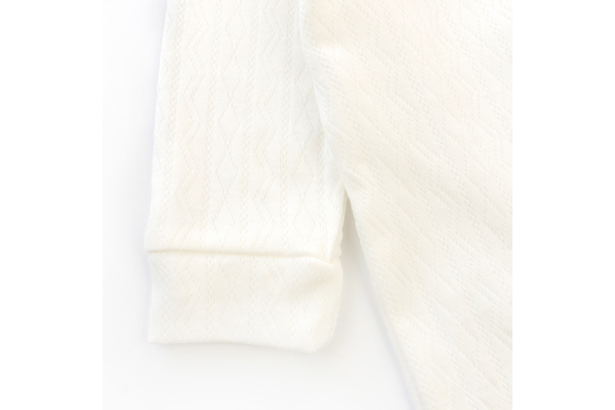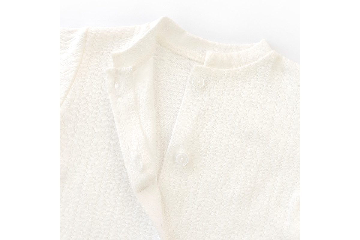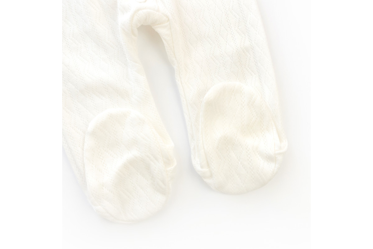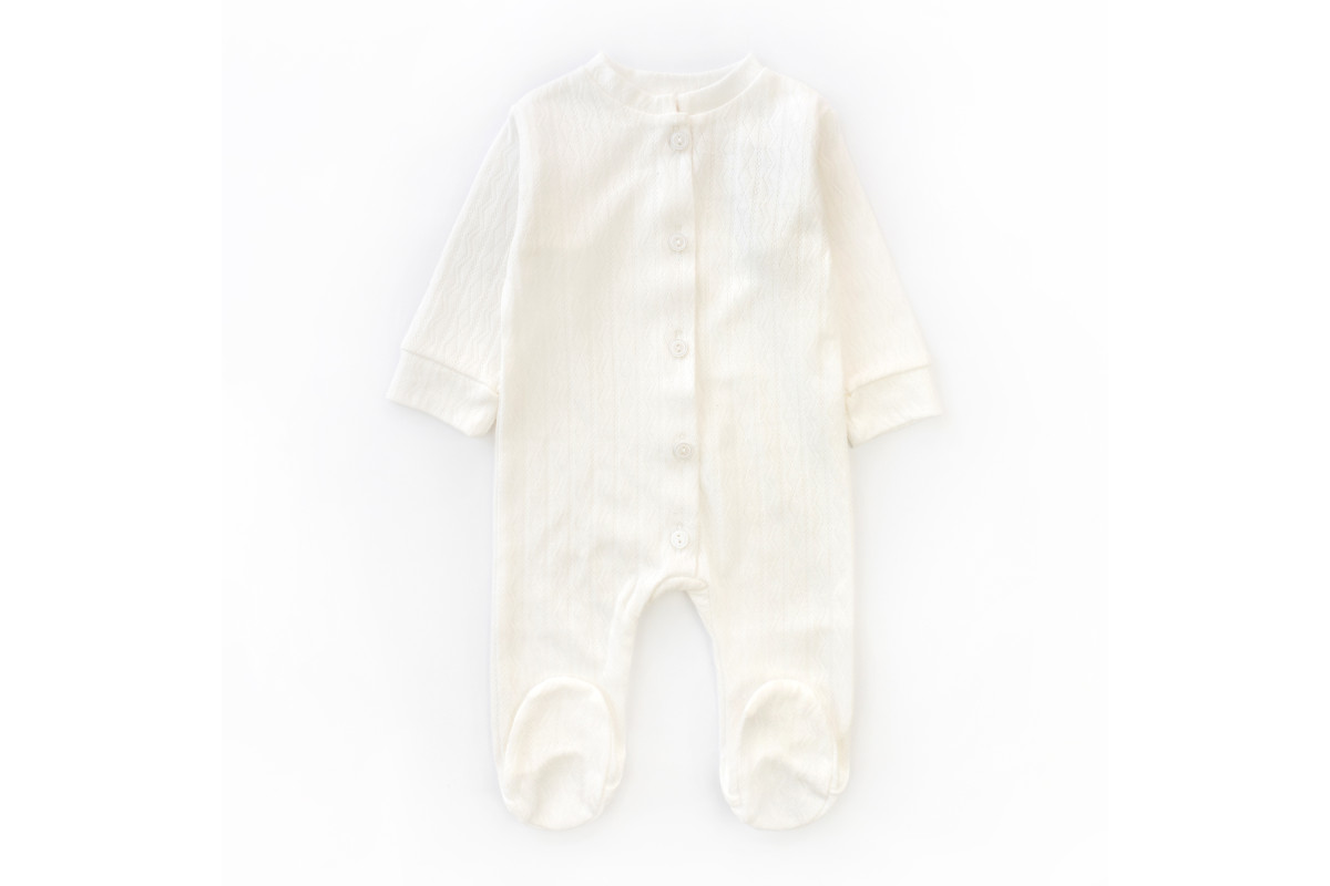 Застёгивается на пуговицы. Имеет открытые рукавчики и закрытые стопы ножек.