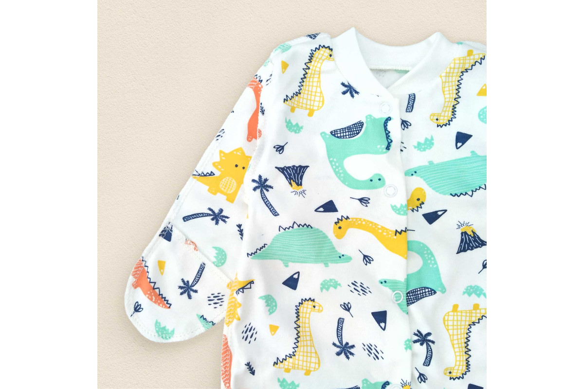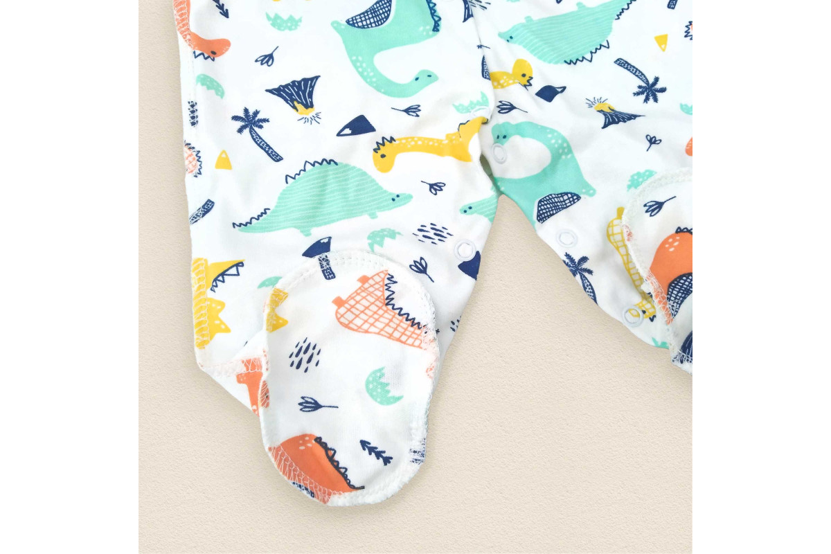 Слип с наружными швами для новорожденных с ярким рисунком – динозаврики.