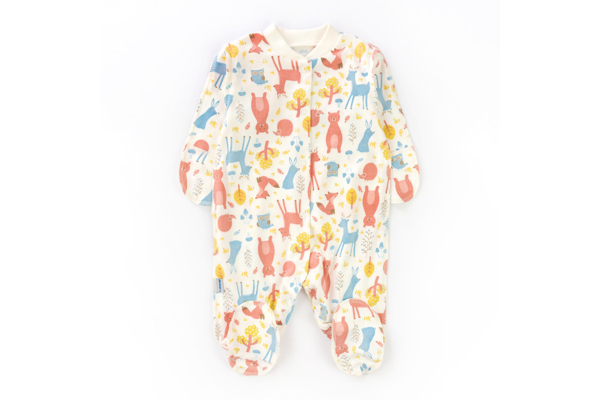 Нежный и стильный слип в молочном цвете с яркими лесными зверятами.