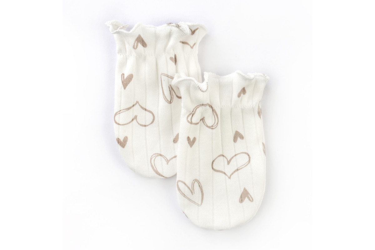 Очень нежные царапки для девочки молочного цвета с сердечками.
