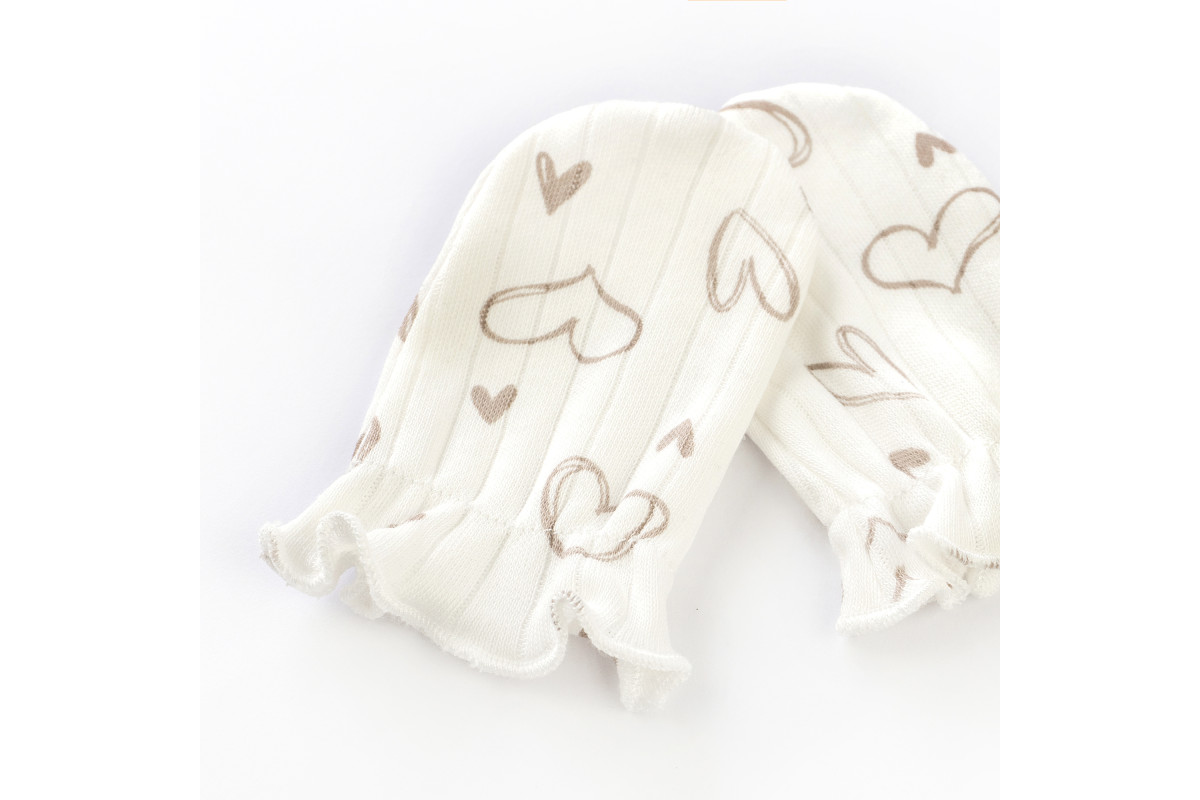 Очень нежные царапки для девочки молочного цвета с сердечками.Нежная и эластичная резиночка отлично ..