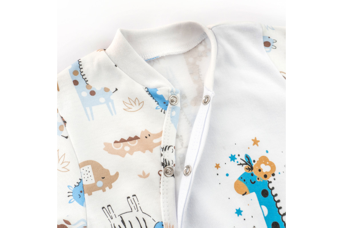Человечек с наружными швами для детей от рождения до трех месяцев с милым рисунком.Застежка – кнопки..