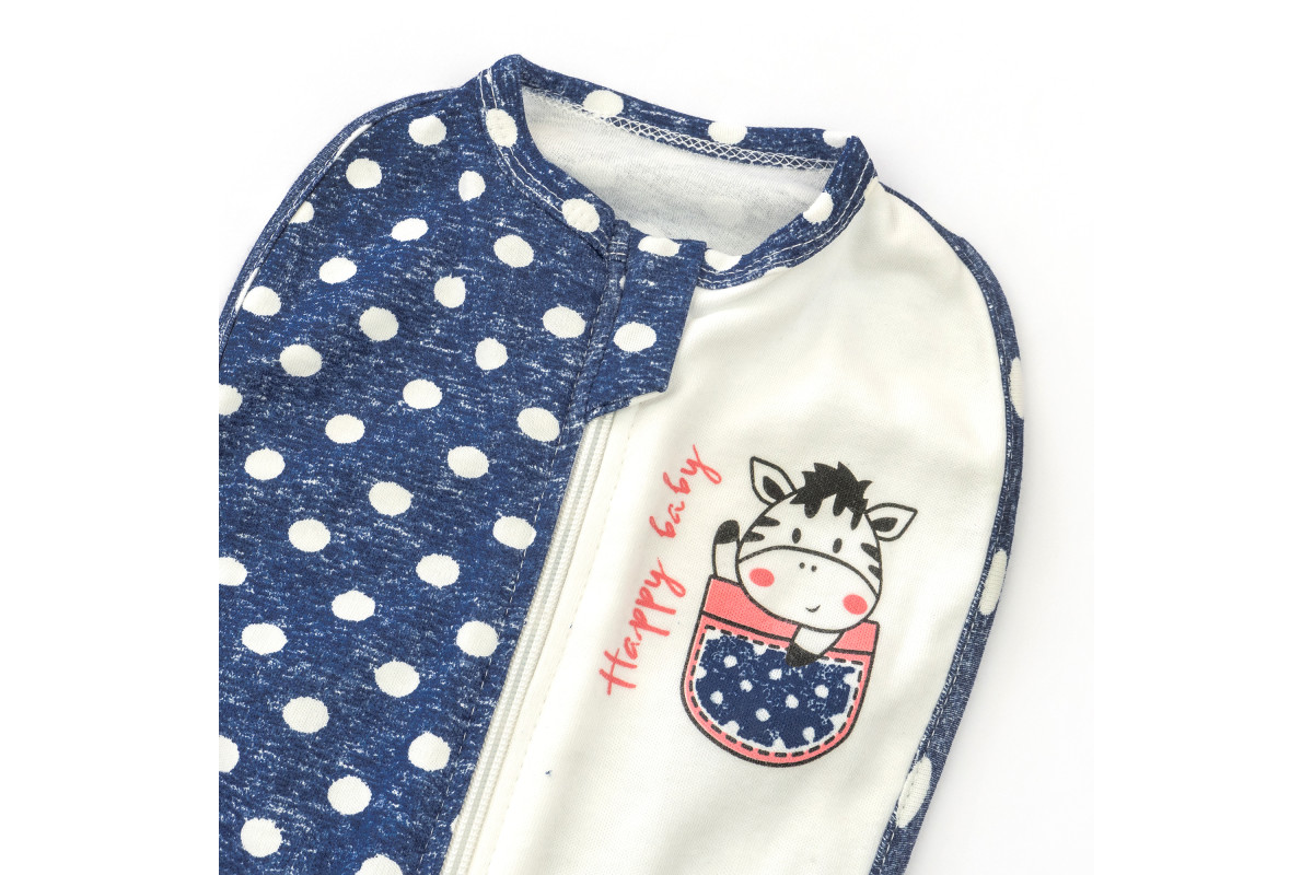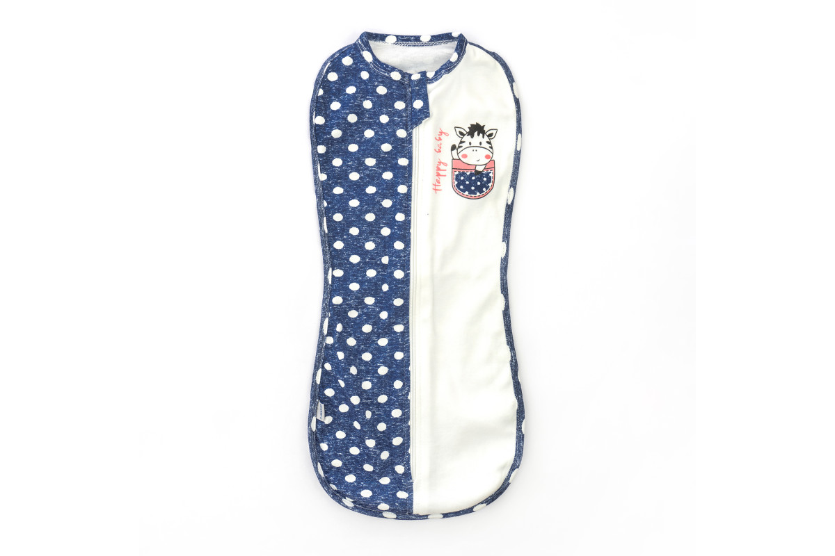 Пеленка-кокон на молнии в красивой и стильной бело-синей расцветке с принтом зебра.