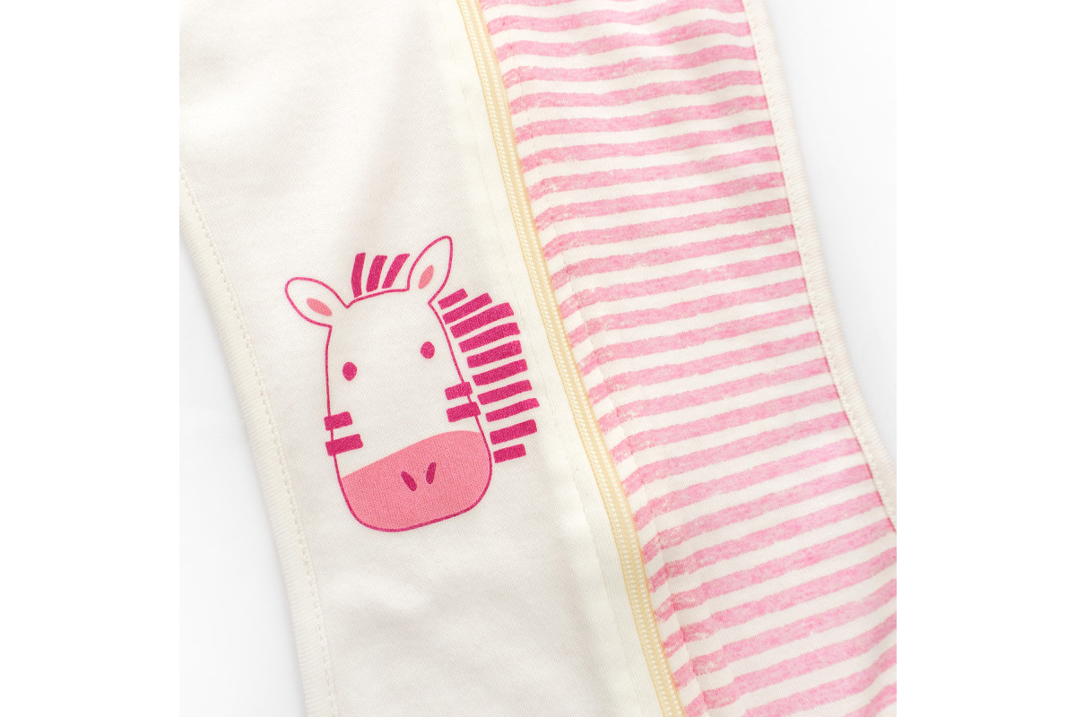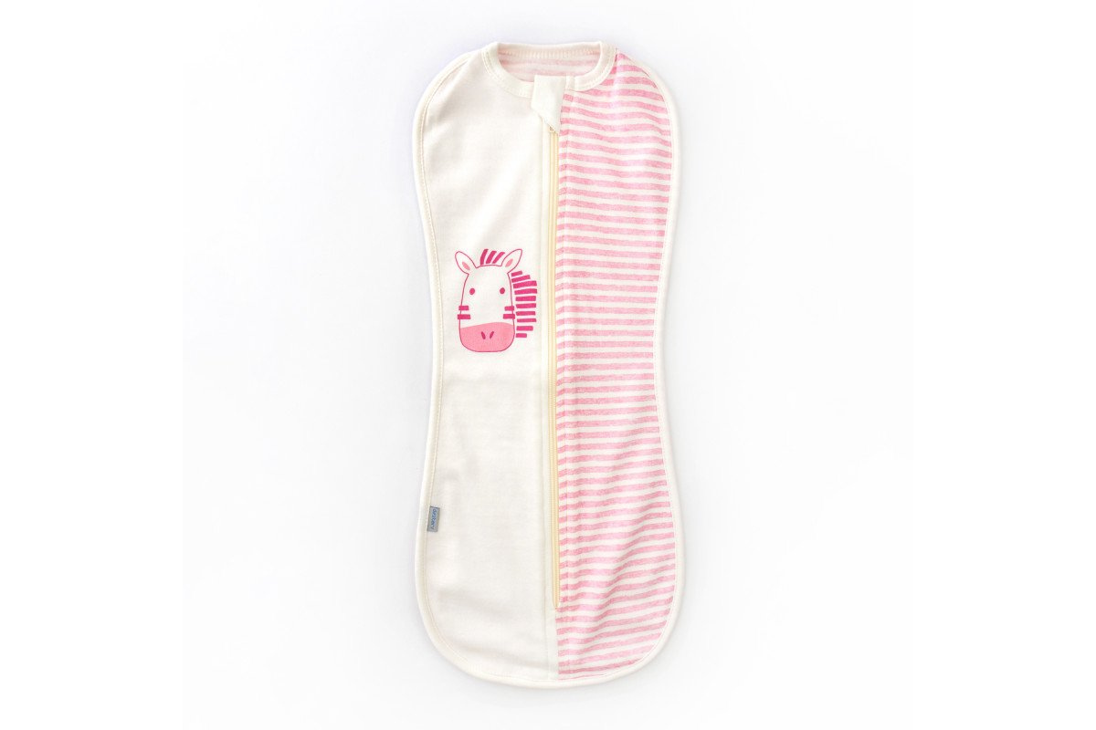 Пеленка-кокон на молнии в красивой и стильной бело-розовой расцветке с принтом зебра.