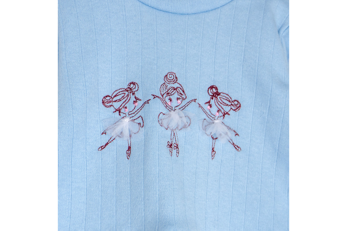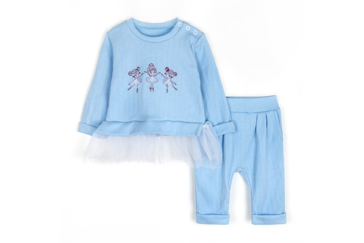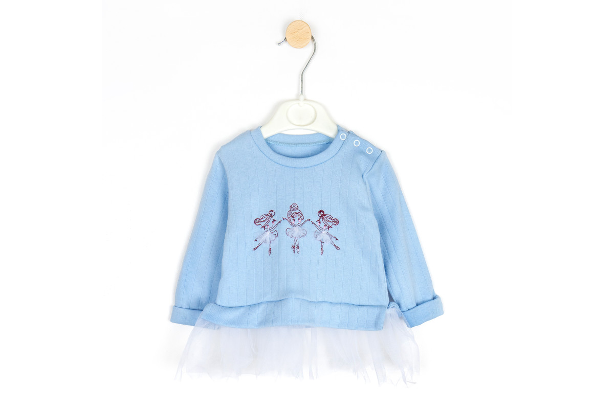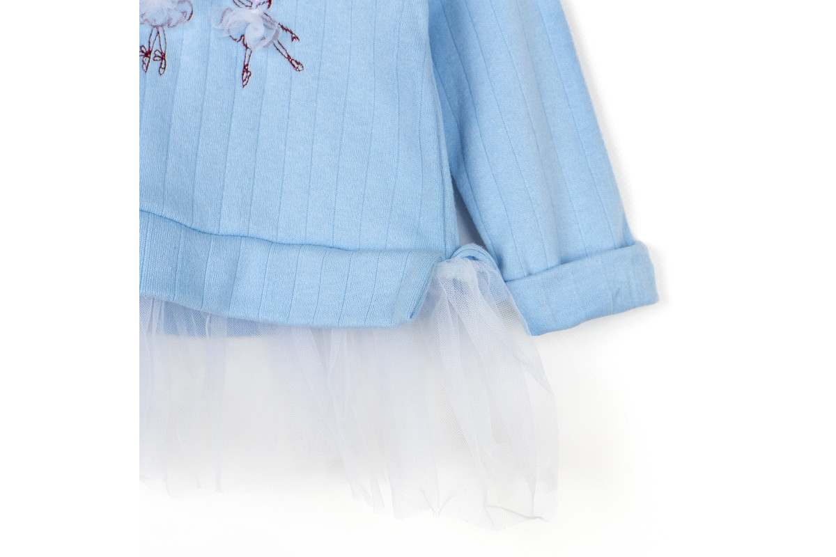 Детский костюмчик в ярком голубом цвете. Кофта декорирована вышивкой и аппликацией из фатина, дополнительно низ отделан фатиновой юбочокой.