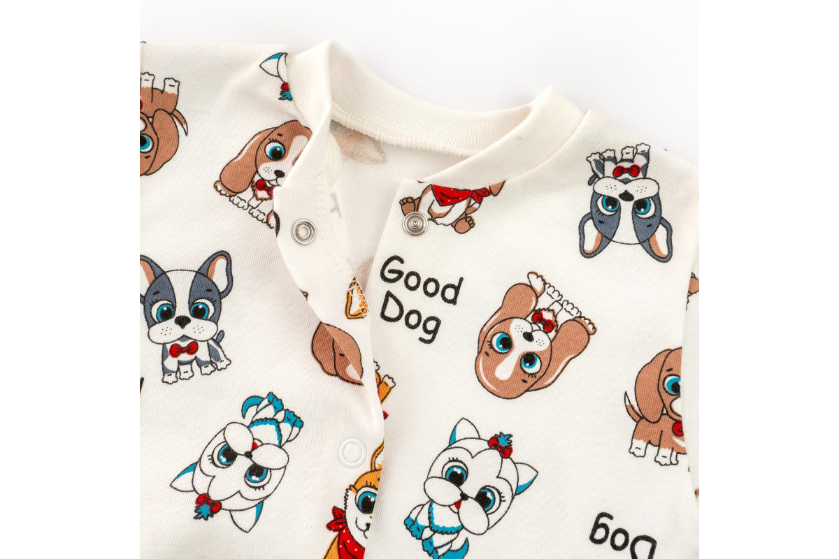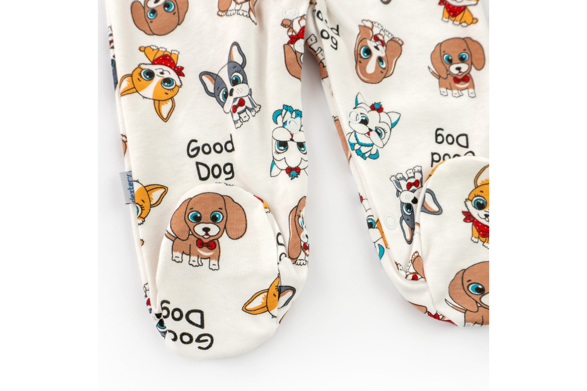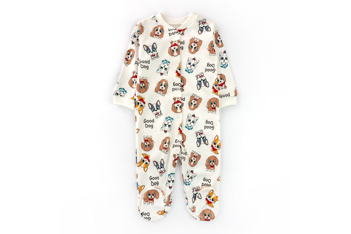 Слип для новорожденного с наружными швами.Ножки и ручки закрыты. Кнопочки в две ножки.Декор - принт ..