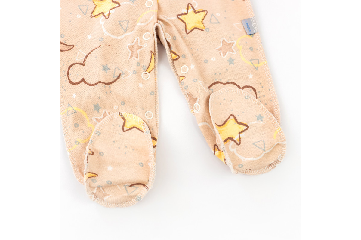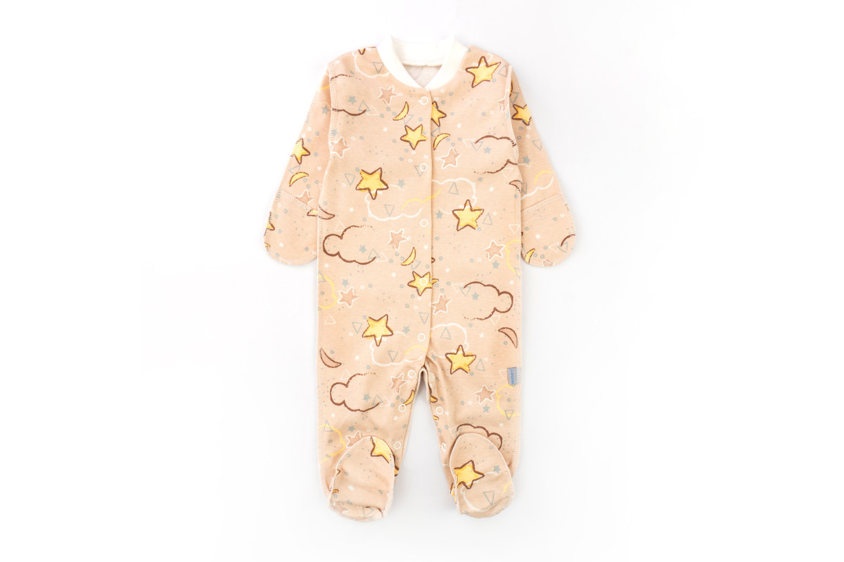 Человечек с наружными швами для детей от рождения до трех месяцев с милым рисунком.Застежка – кнопки..