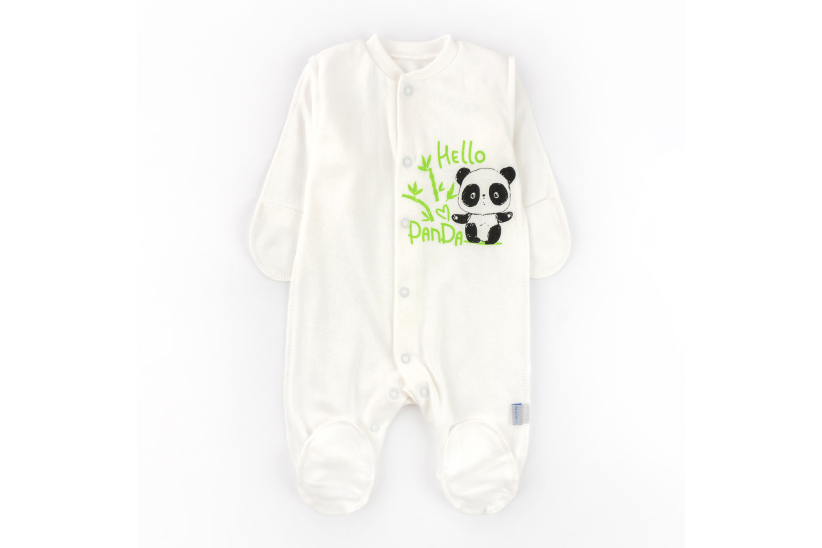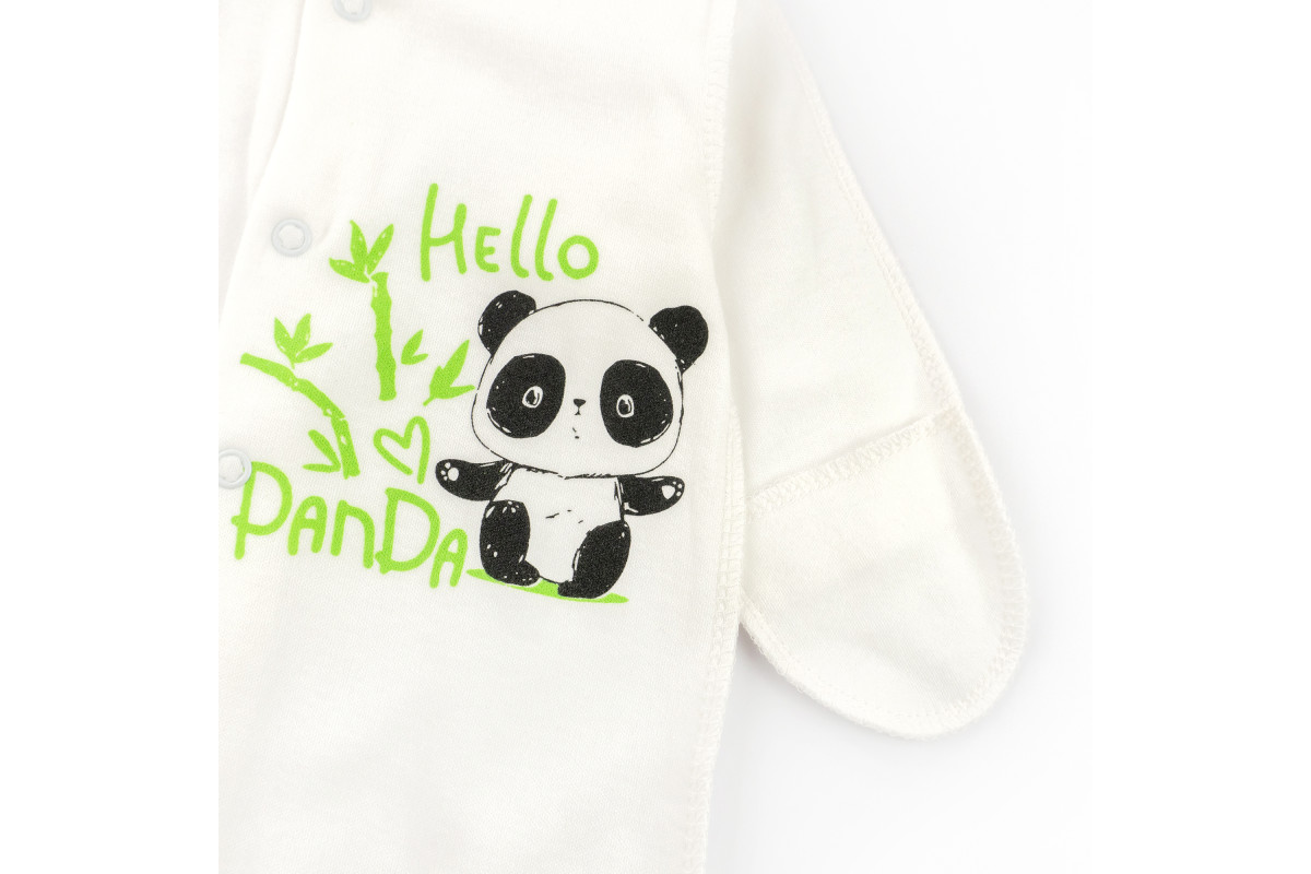Слип для новорожденного белого цвета с аккуратным и милым принтом - панда.