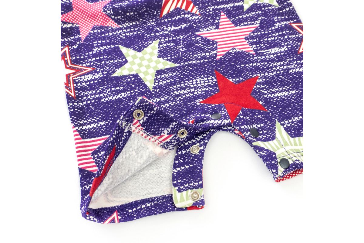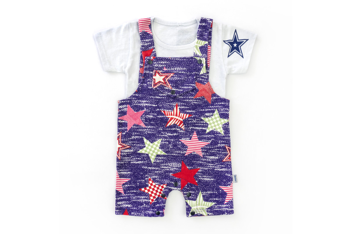Комбинезон-песочник и футболочка с принтом звезды. Мы приготовили очень практичную, стильную и удобную вещь. В данной модельке реализована футболочка с милым принтом на рукавчике, который гармонично смотрится с комбинезоном. На футболочке есть кнопочки на плечике для удобного переодевания малыша. Комбинезон мы украсили кармашком и конечно же добавили кнопочки внизу, чтобы было удобно менять ребенку памперс.