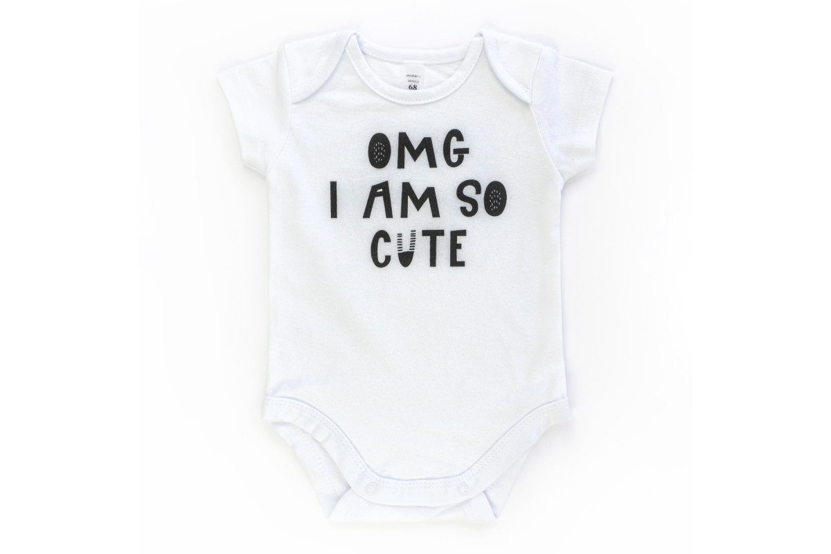 Боді білого кольору з нейтральним принтом підійде і хлопчикам, і дівчаткам.
