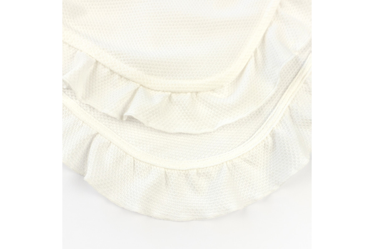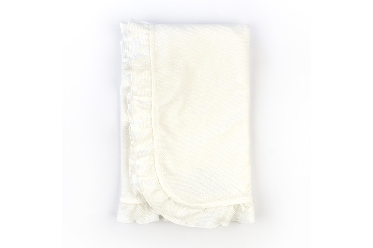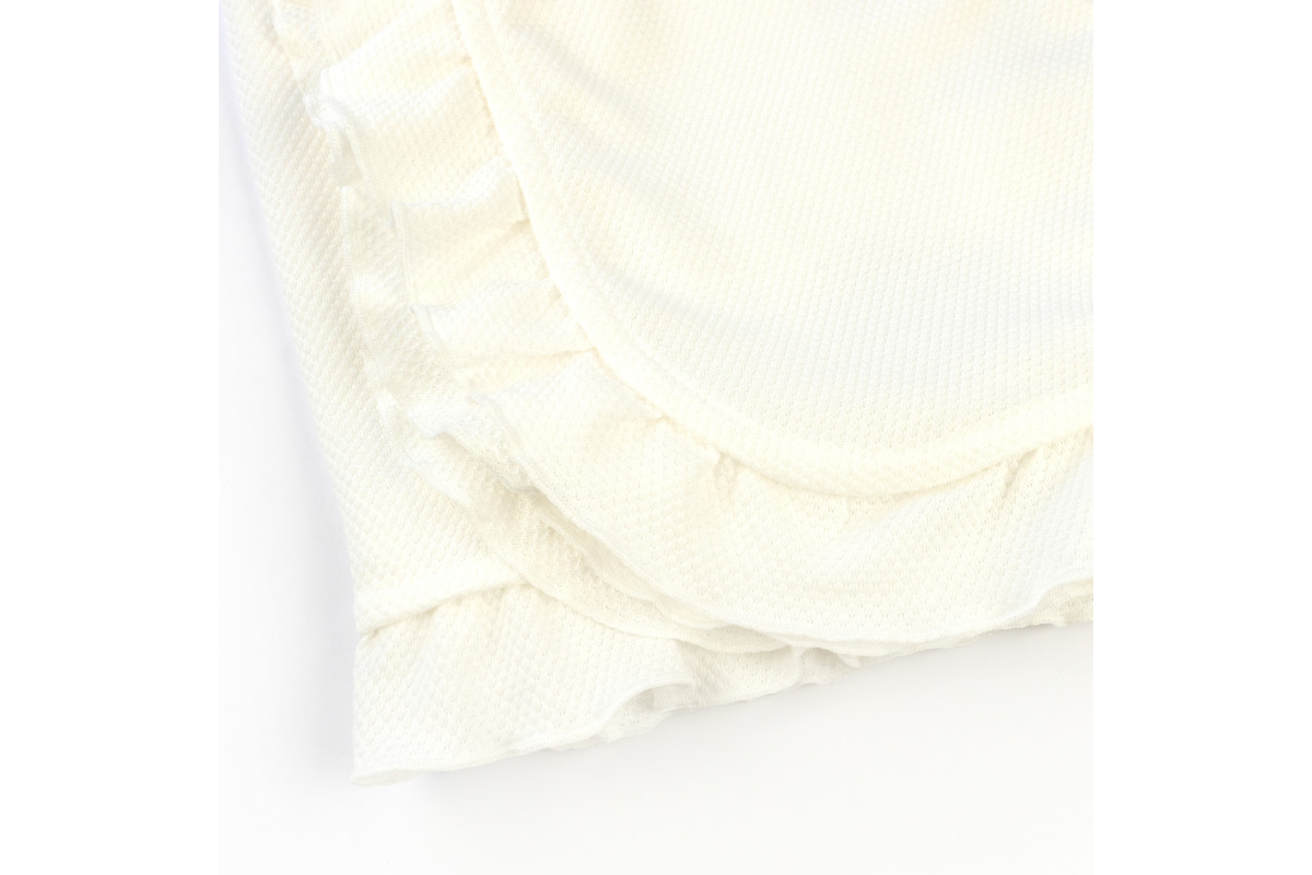 Дуже ніжний і гарний пледик з куліру молочного кольору з рюшею.
