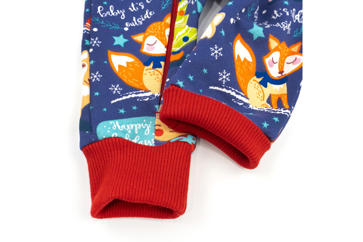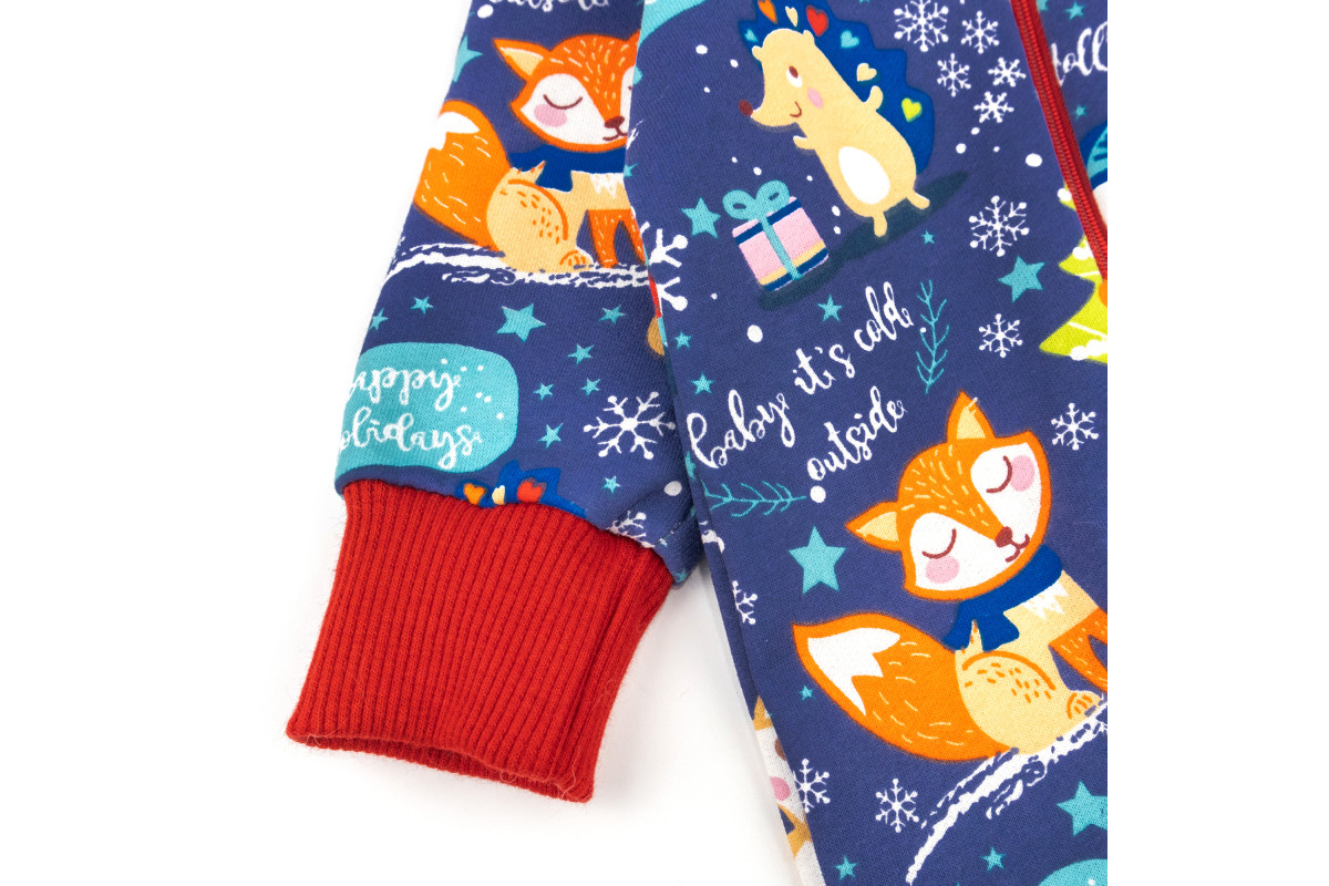 Чоловічок має манжети з рубчика червоного кольору. Застібається за допомогою блискавки.
