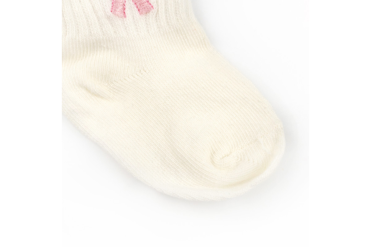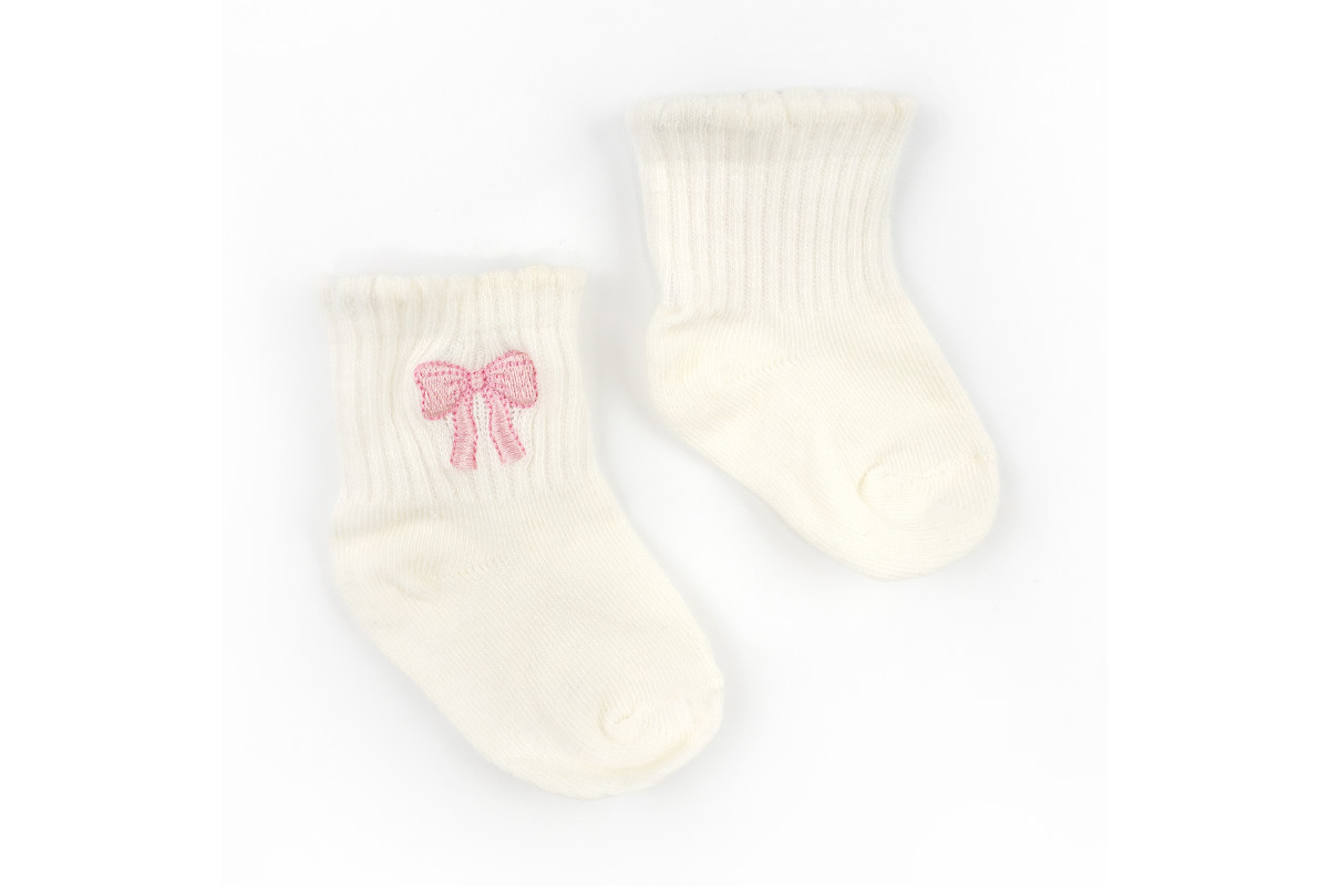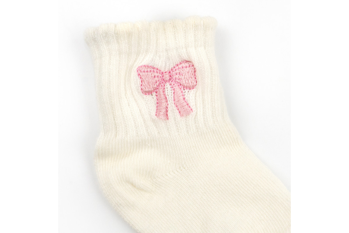 Шкарпетки в забарвленні молочного кольору з вишивкою рожевого бантика.