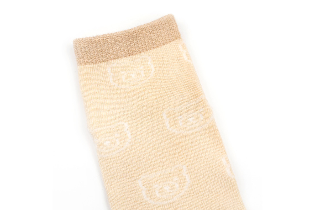 Шкарпетки дитячі бежевого кольору.Прикрашені малюнком у вигляді пухнастої мордочки ведмедика.Мають а..