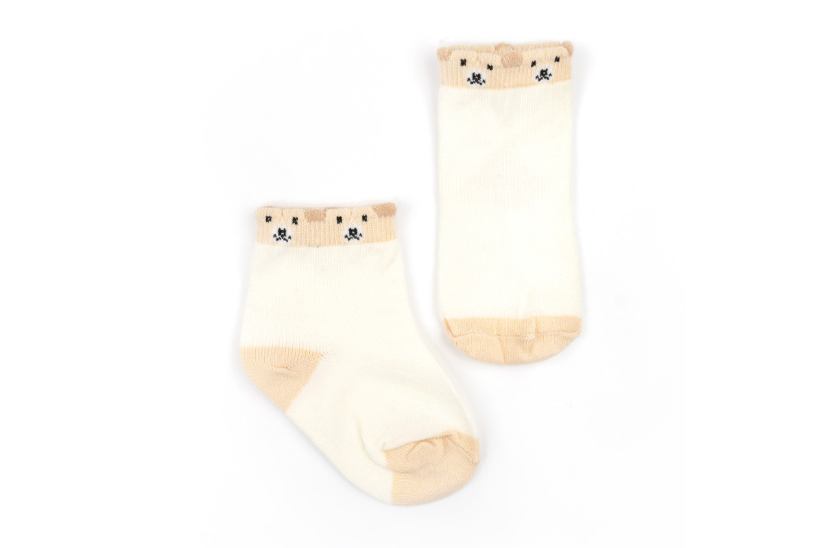 Шкарпетки для дітей молочного кольору з зображенням ведмедиків зверху.