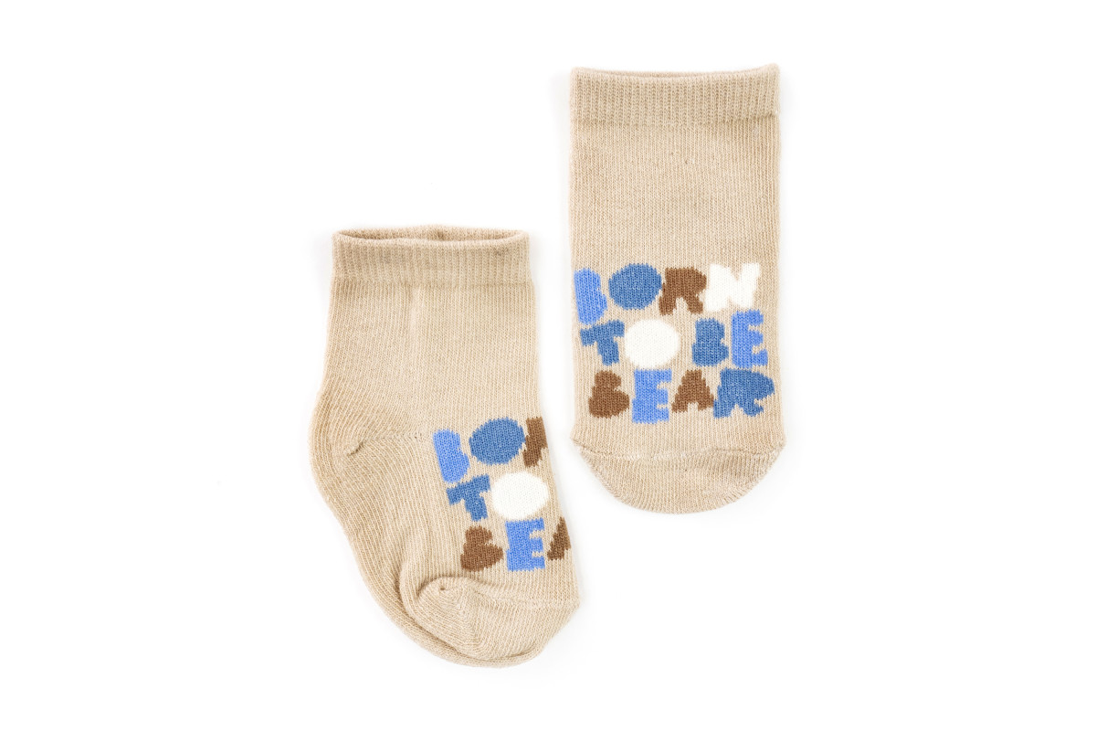 Шкарпетки для дітей бежевого кольору із написом Born to be Bear.