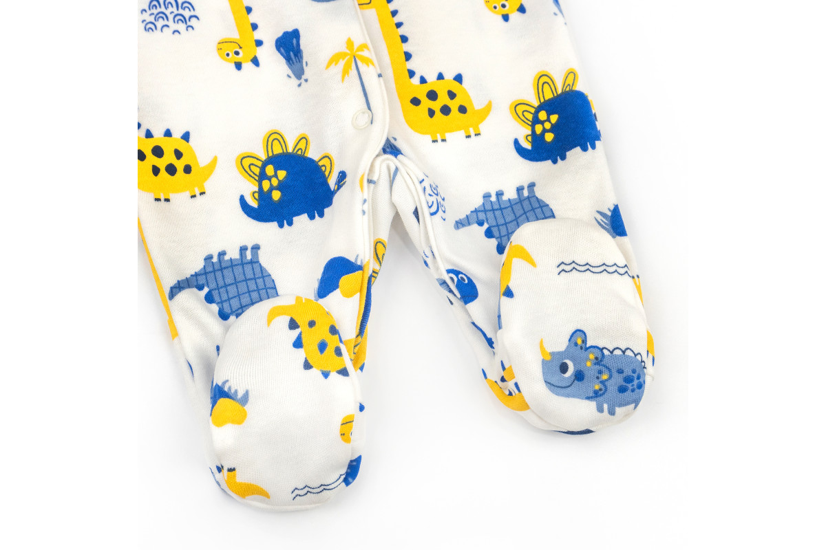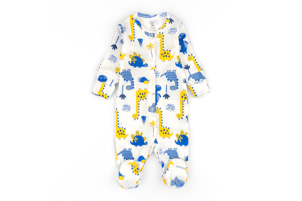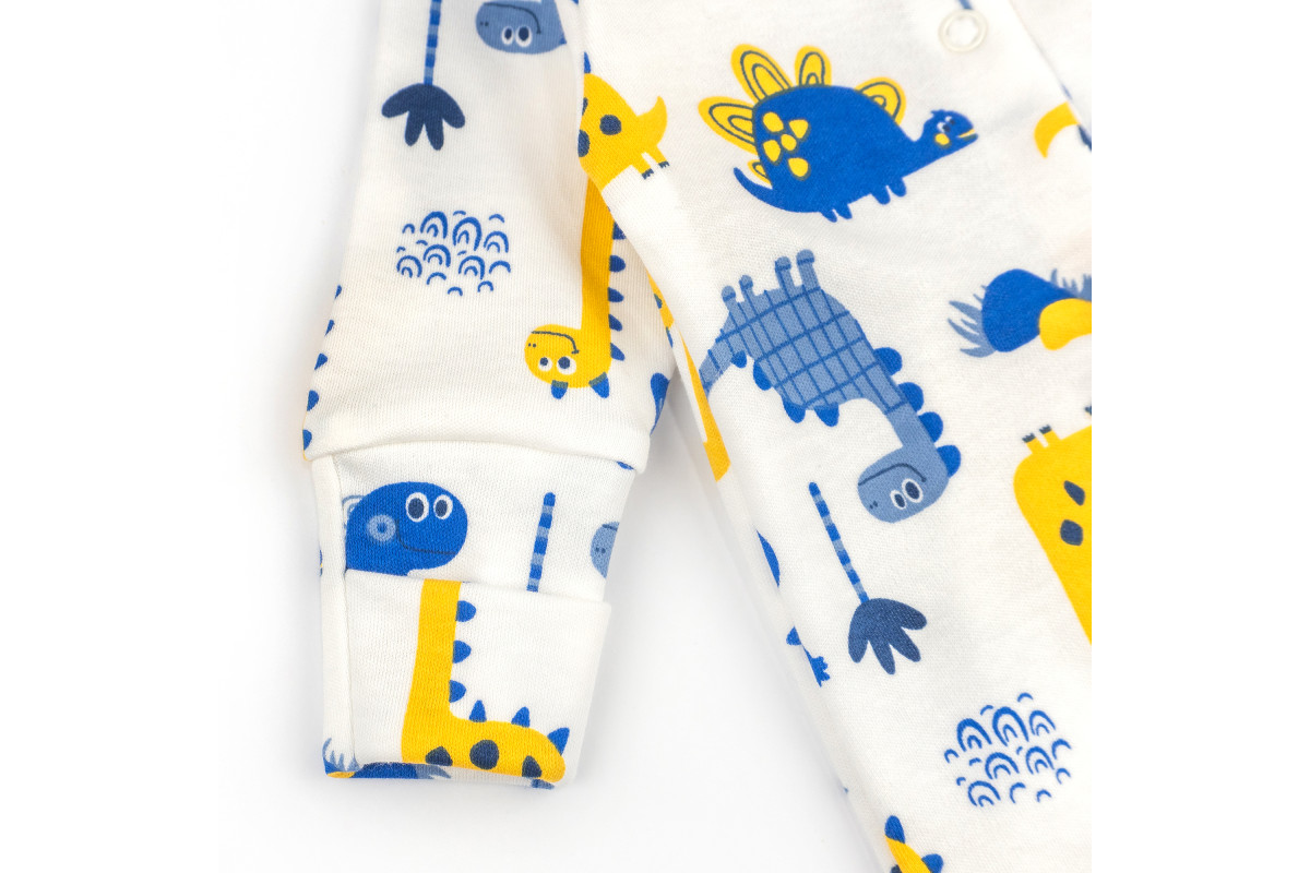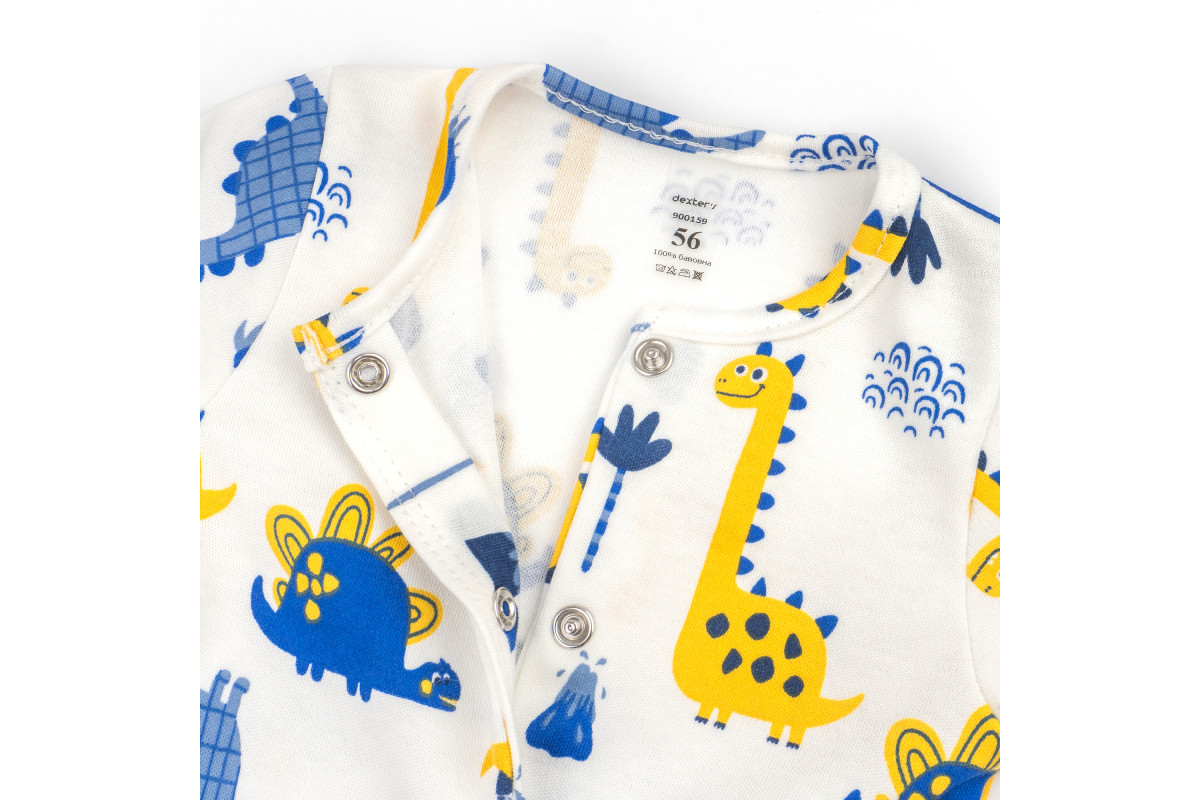 Чоловічок в забарвленні молочного кольору з динозаврами підійде для хлопчика.