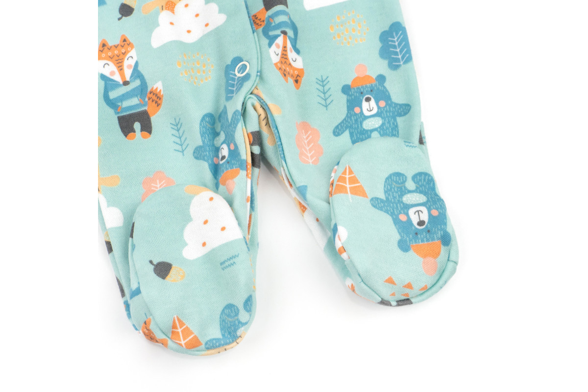 Комбез має забарвлення блакитного кольору з ведмедиками.