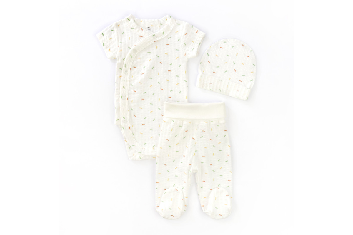 Комплект для немовлят 3 в 1 боді повзуни шапочка з підворотом Confetti