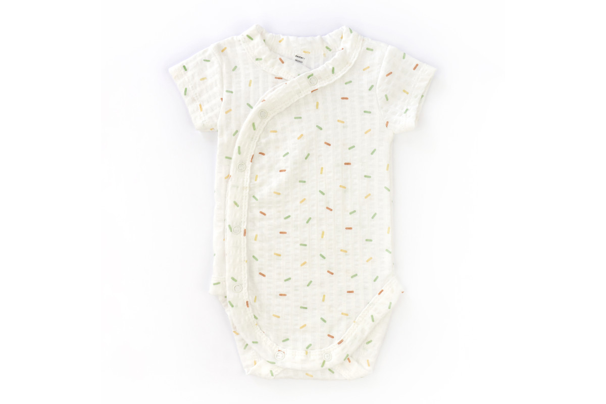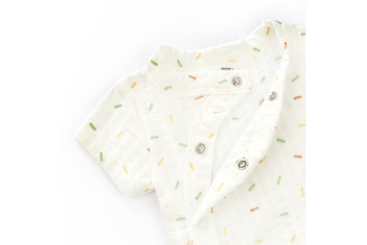 Колір комплекту - молочний, прикрашений милим принтом кольорове конфеті, який надає образу ніжності та радості.