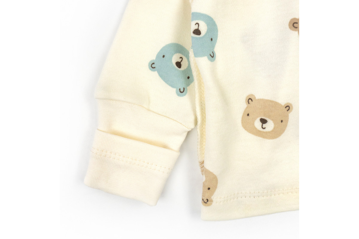 Має забарвлення молочного кольору з ведмедиками, яке підійде і для хлопчика, і для дівчинки.