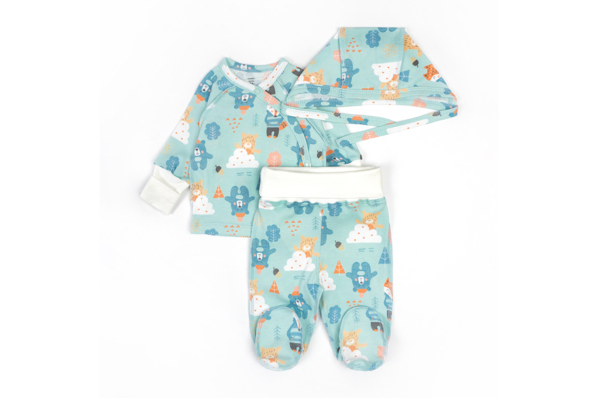 Комплект у забарвленні блакитного кольору з ведмедиками підійде і для хлопчика, і для дівчинки.