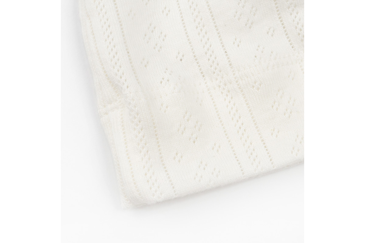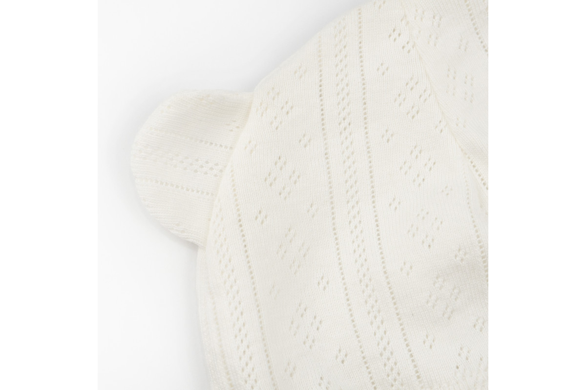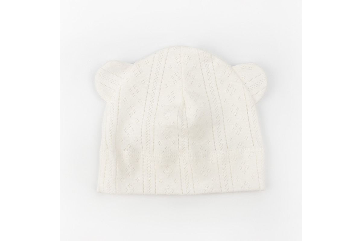 Ніжна шапочка для новонароджених з вушками молочного кольору.