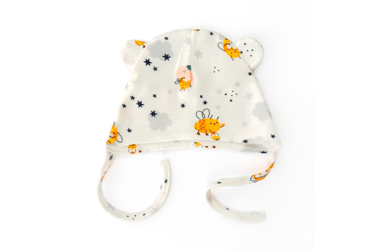 Шапочка з вушками для немовлят на зав'язках з бджілками Bees