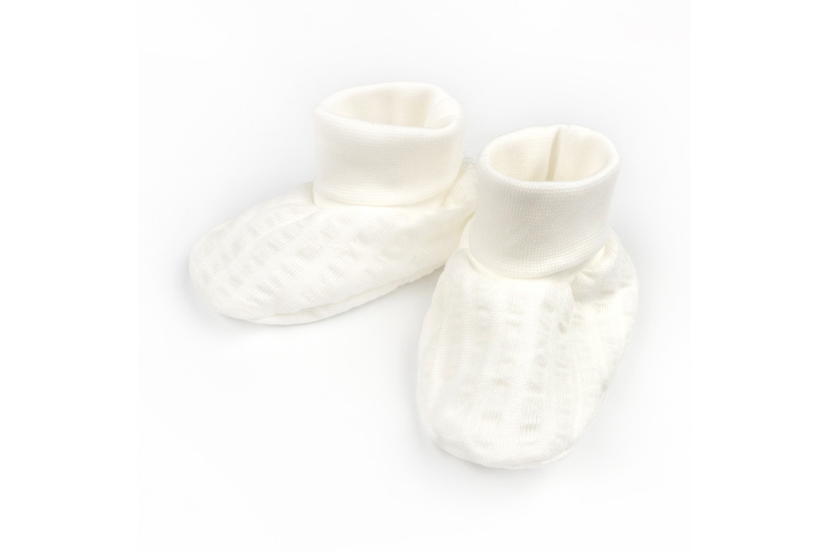 Пінетки в забарвленні молочного кольору підійдуть і для хлопчика, і для дівчинки.