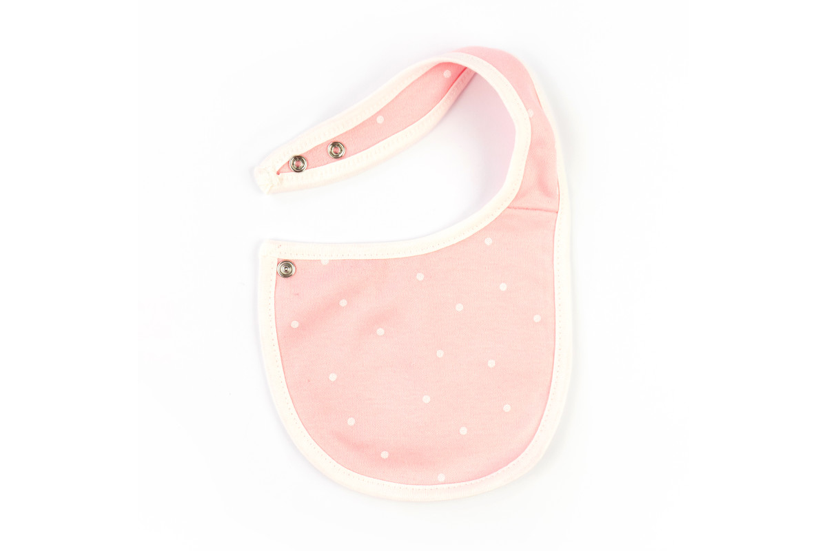 Милий слинявчик для дівчинки рожевого кольору в цяточку.