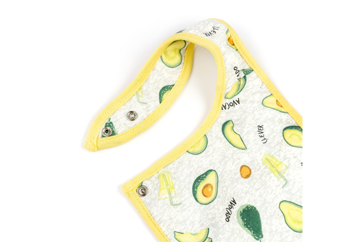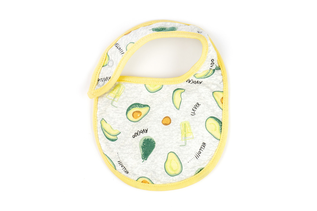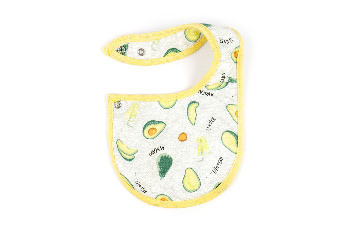 Яскравий слинявчик для немовлят сіро-жовтого кольору з авокадо.