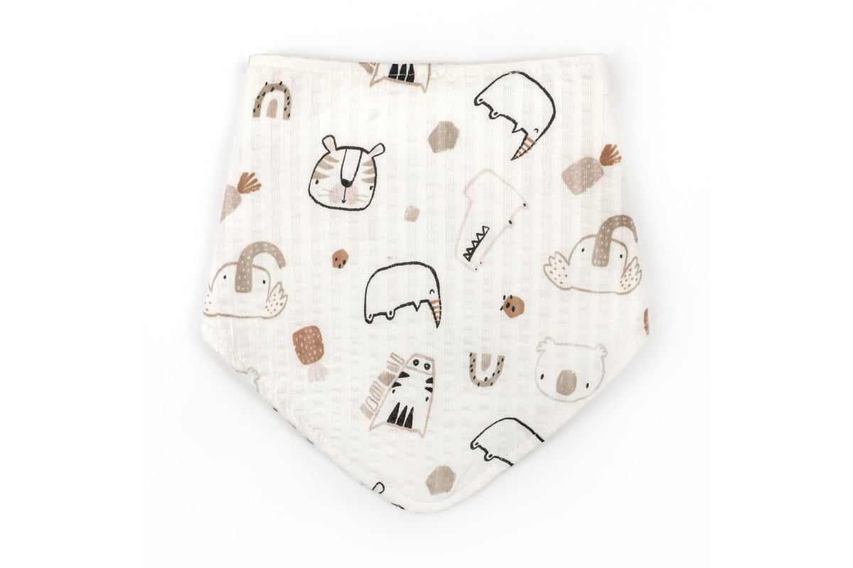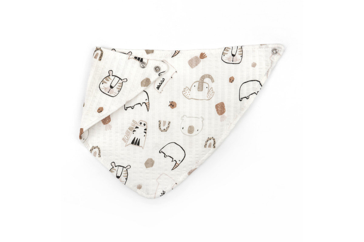 Слинявчик має забарвлення молочного кольору з тваринками, яке підійде як для хлопчика, так і для дівчинки.