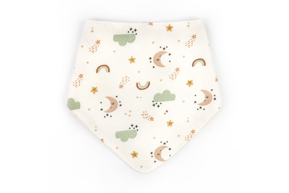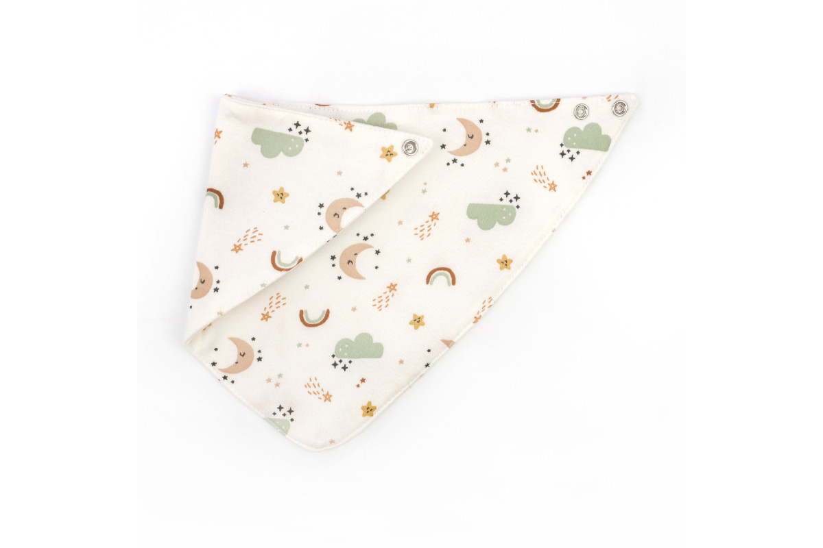 Слинявчик має забарвлення молочного кольору з місяцями, яке підійде і для дівчинки, і для хлопчика.
