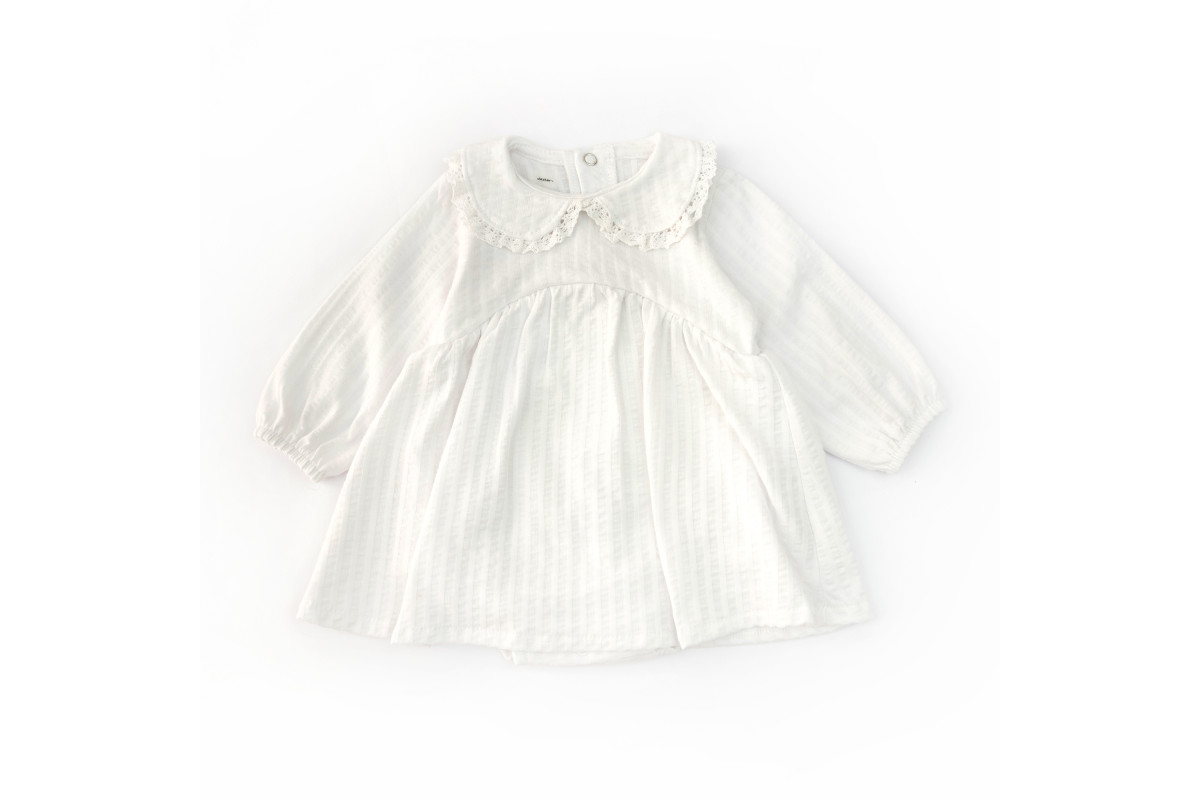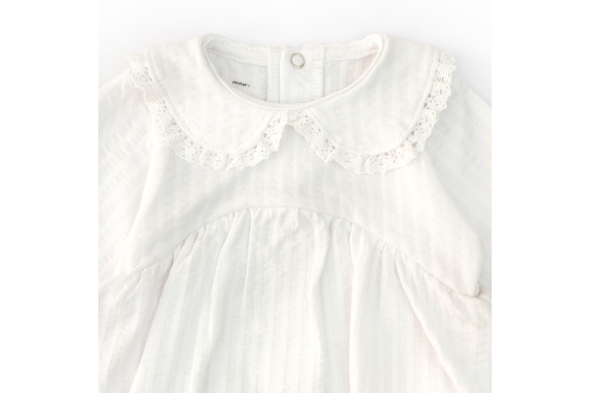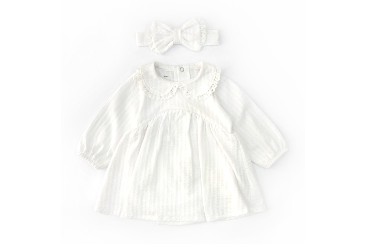 Боди-платье для девочки с повязкой.Платье в нежном молочном цвете.Боди сшито из жаккардового кулира ..